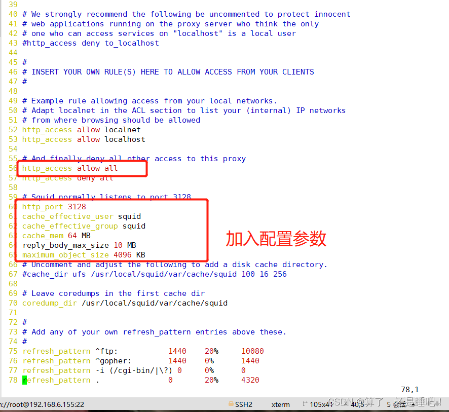 http_access allow all #放在 http_access deny all 之前,允许任意客户机使用代理服务,控制规则自上而下匹配