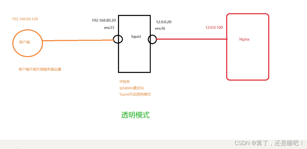 Squid服务器:双网卡,内网ens33:192.168.6.156 外网ens36:12.0.0.20
