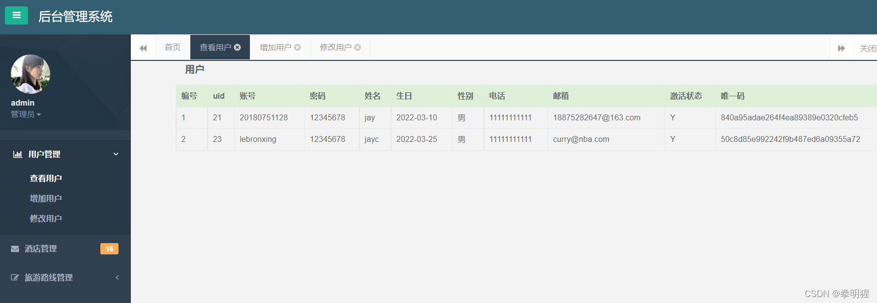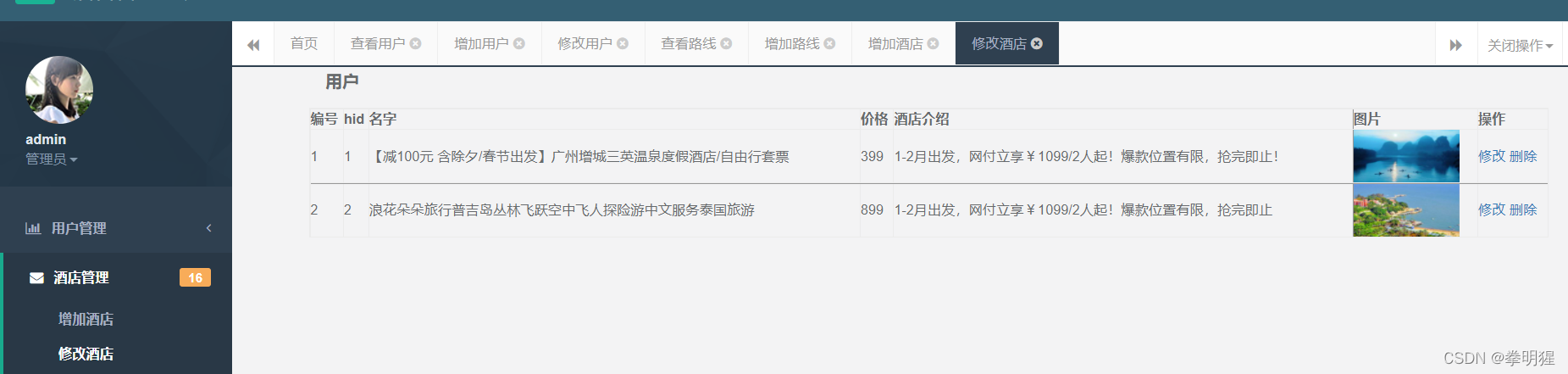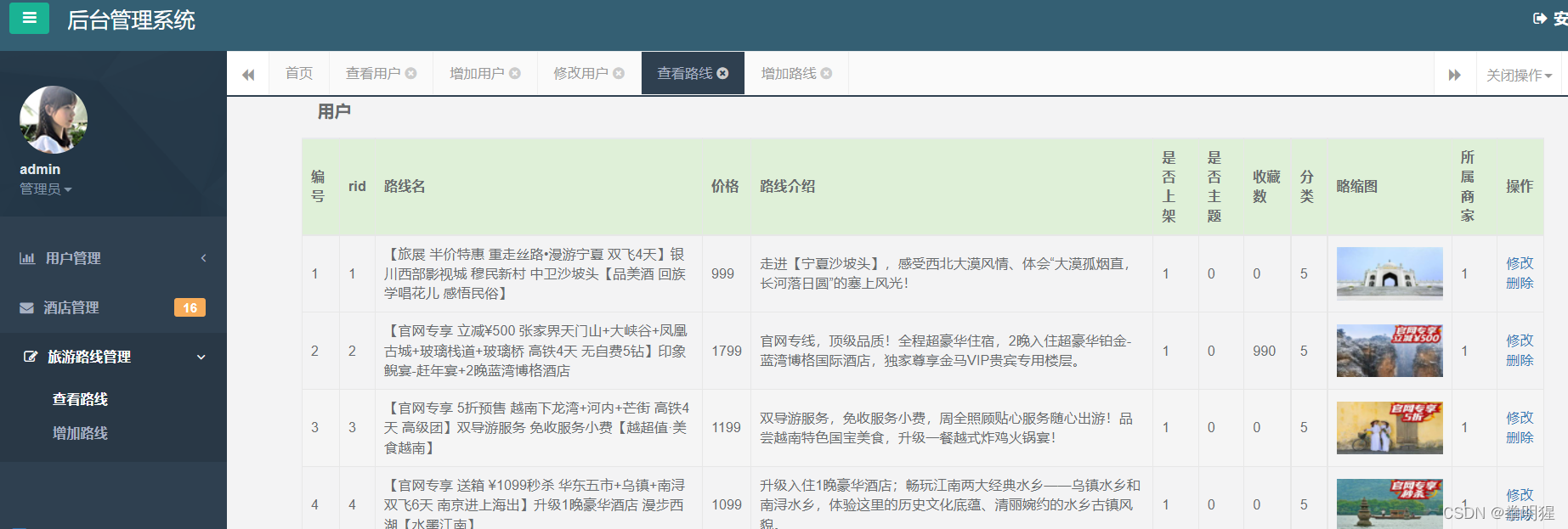 3.旅游路线管理:对旅游路线信息进行增删改查操作