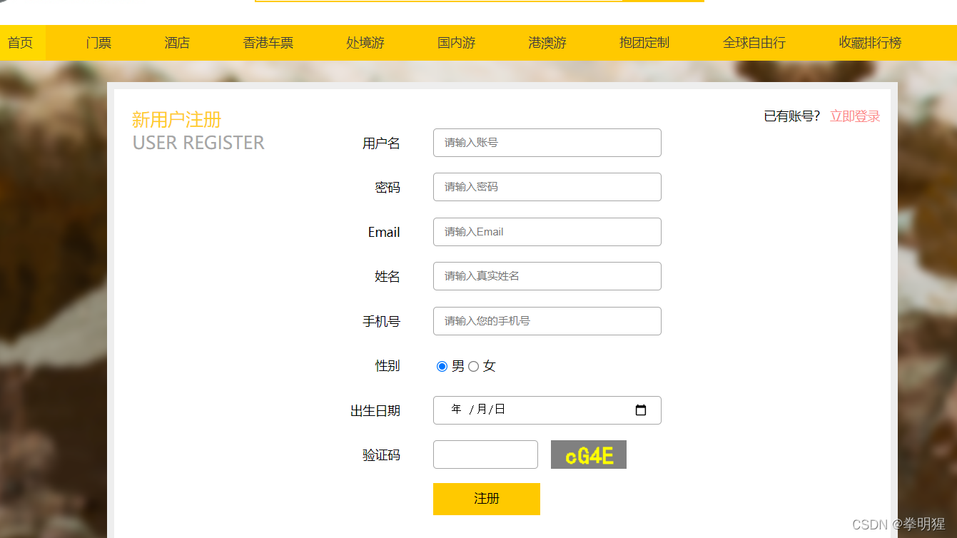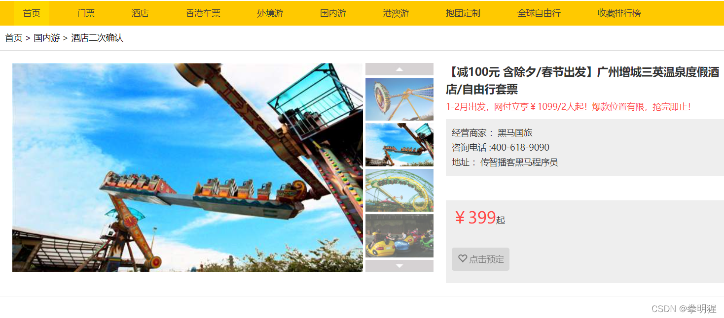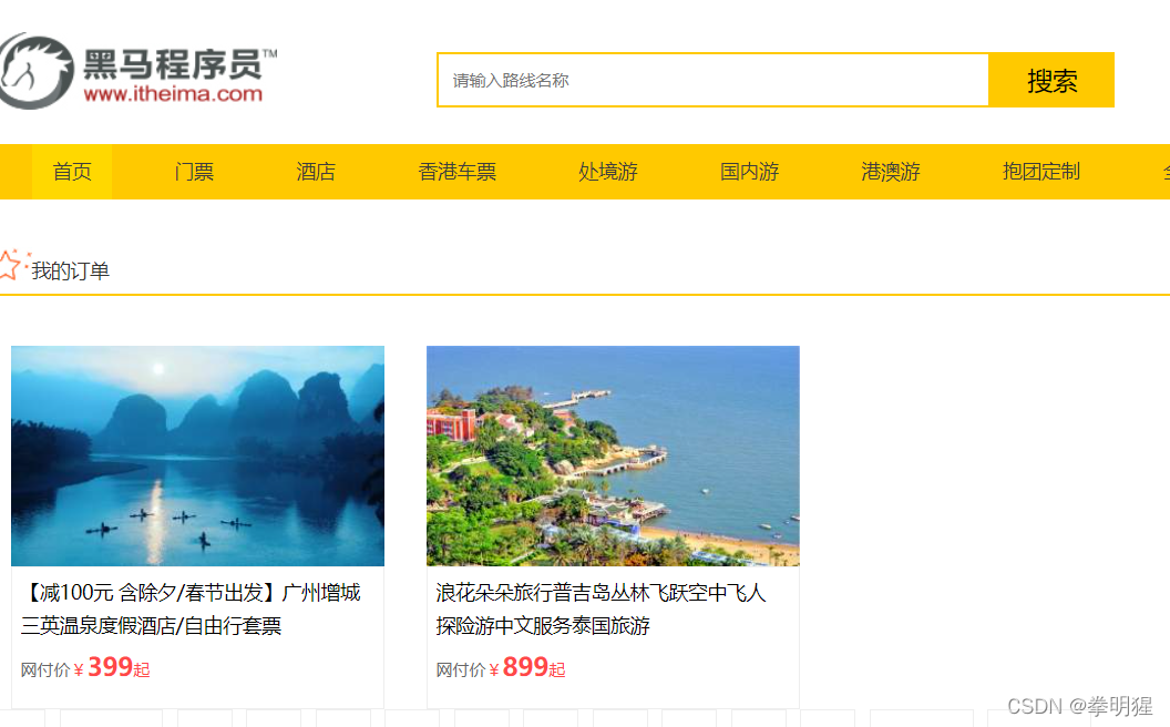 - 首页展示所有旅行路线信息,及旅游分类信息