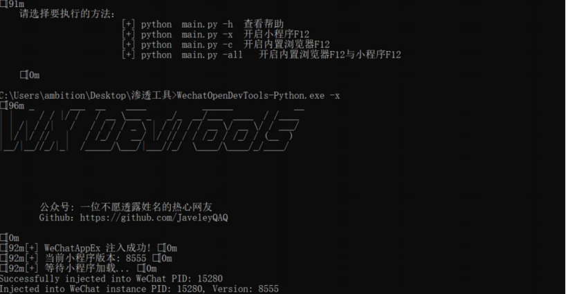 这个工具是方便在打开小程序后,能让小程序像网页一样f12打开调试- 有一个风险就是你的账号可能被列为风控账号不允许你继续访问某些小程序之类的,请谨慎,最好是开小号来调试。