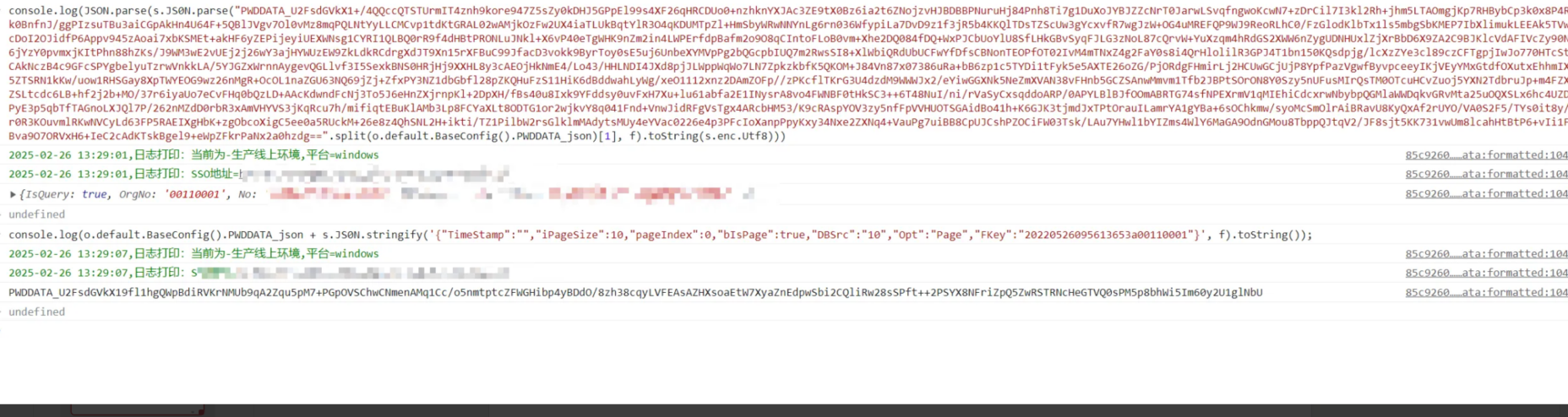 一般情况下,能够反编译小程序了,那静态分析的差不多了,利用动态调试的好处,能够直接运行对应的js代码,那么我们直接找到加密函数解密函数直接在console上执行即可,脚本都不用写了。