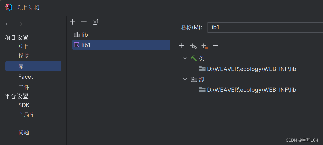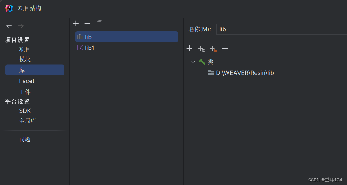 2)引入JAR包,分别是resin的lib目录以及ecology的lib目录