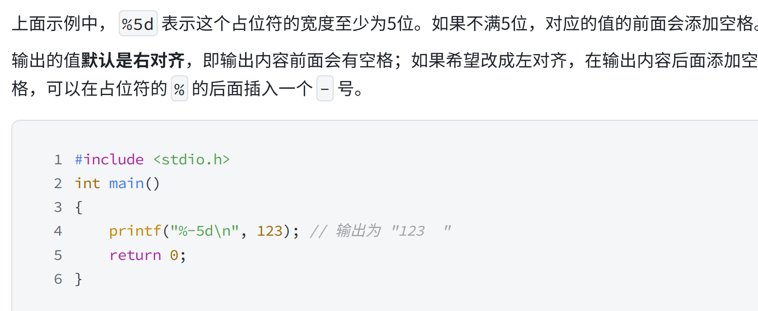 %-5d是左对齐的,超过5位,是几位就显示几位,不足五位就补齐空格即可