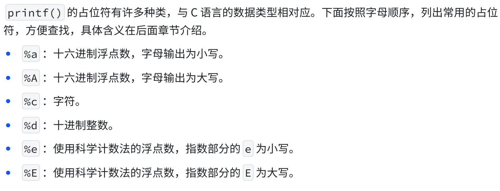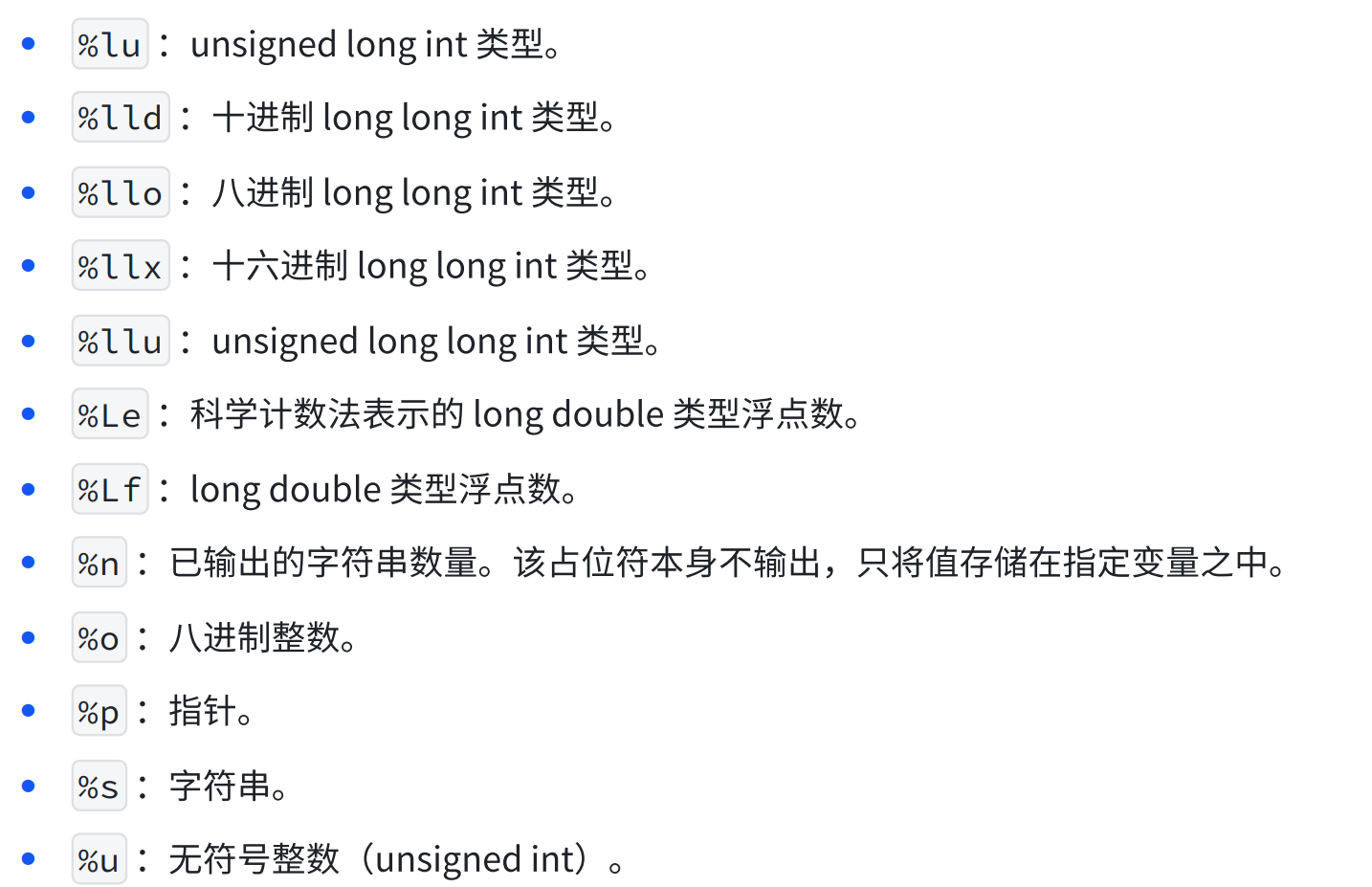 这些占位符不需要全部记住,只要记住几个常用的即可,日后用到了再查即可