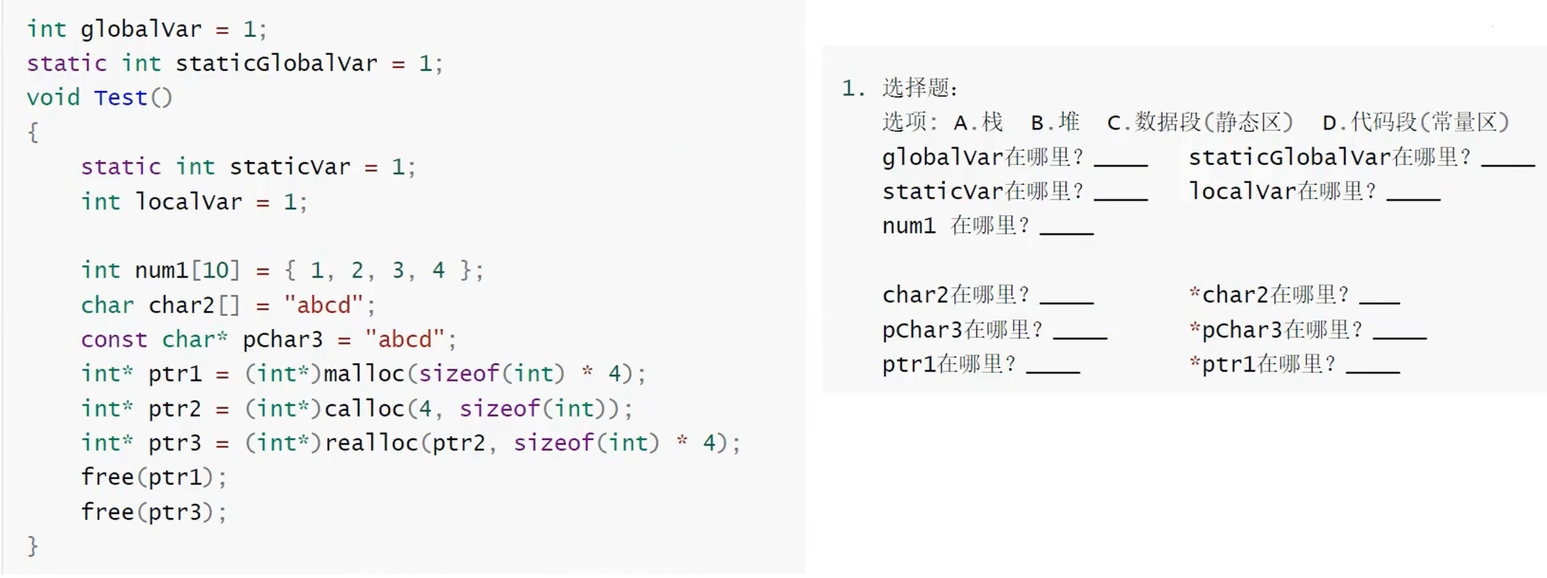 二.C语言的内存管理方式:malloc/calloc/realloc/free