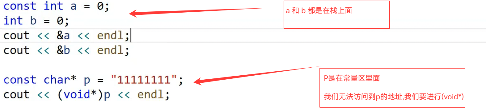 const 的变量定义在局部的话,会存储在栈上面