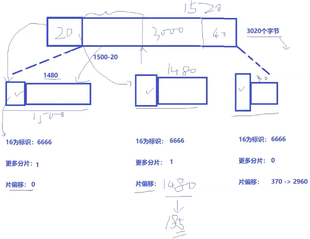 数据链路层规定不能超过1500,所以分片的工作,就由我们的网络层和对方的网络层进行分片和组装