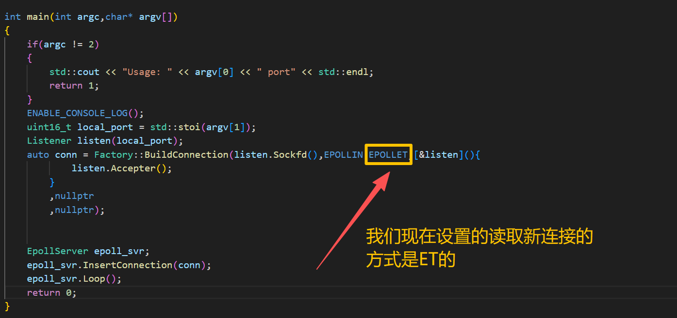 conn->SetEvents(EPOLLIN|EPOLLET);
