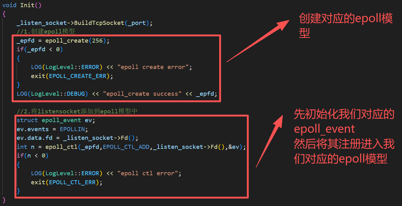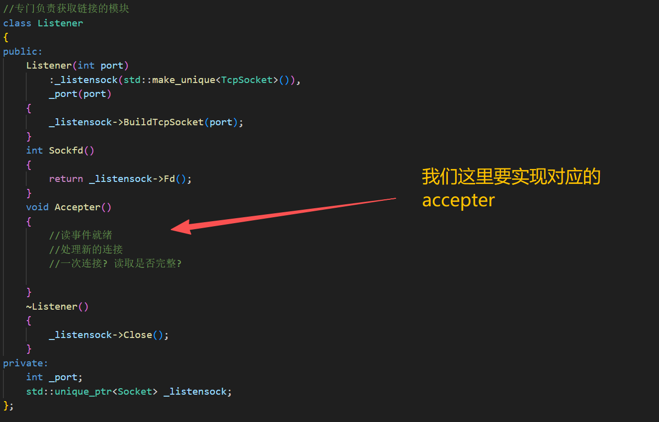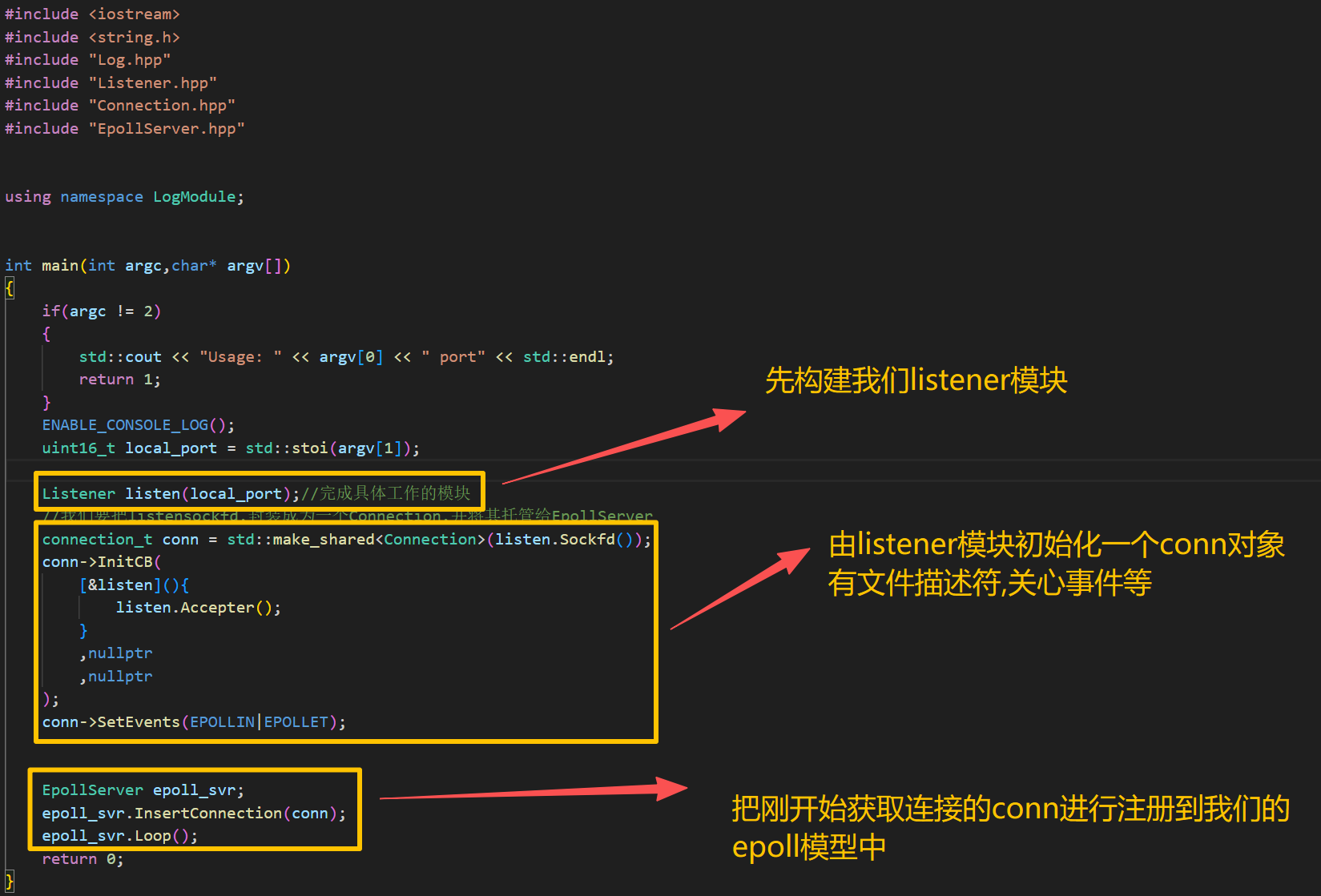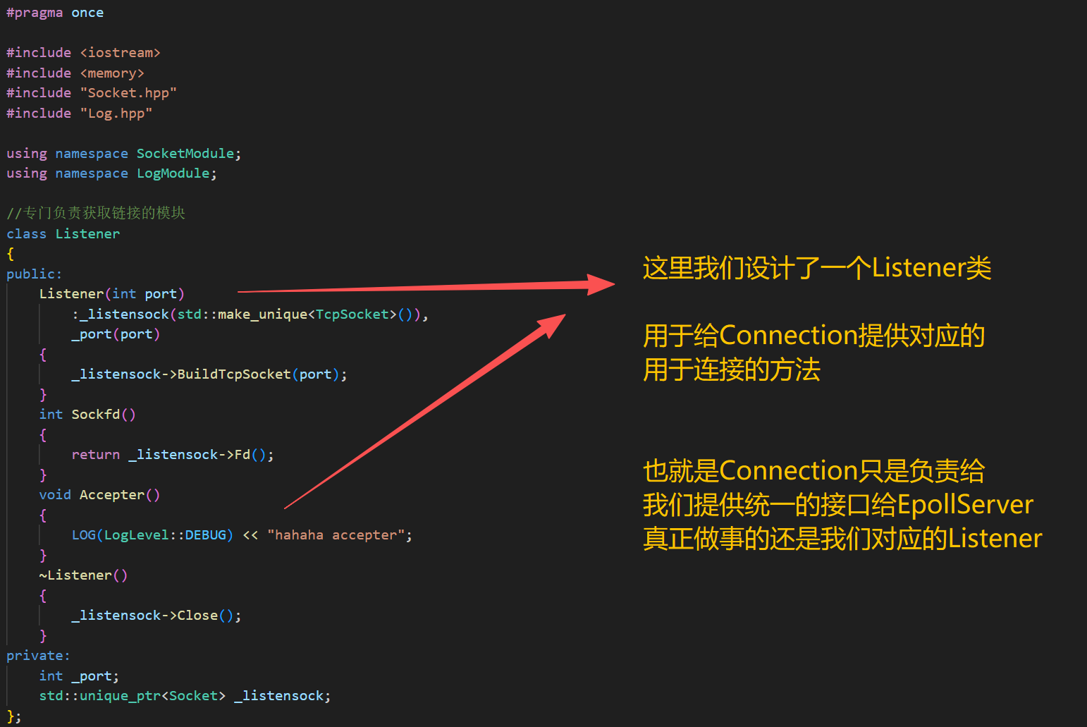 //我们要把listensockfd,封装成为一个Connection,并将其托管给EpollServer