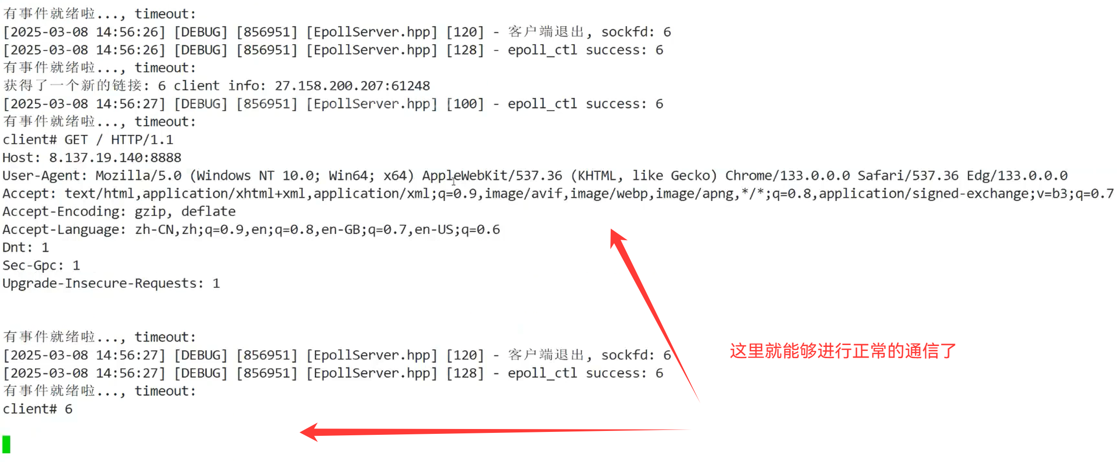 std::cout << "获取了一个新的连接: " << newfd << " client info: " << client.Addr() << std::endl;