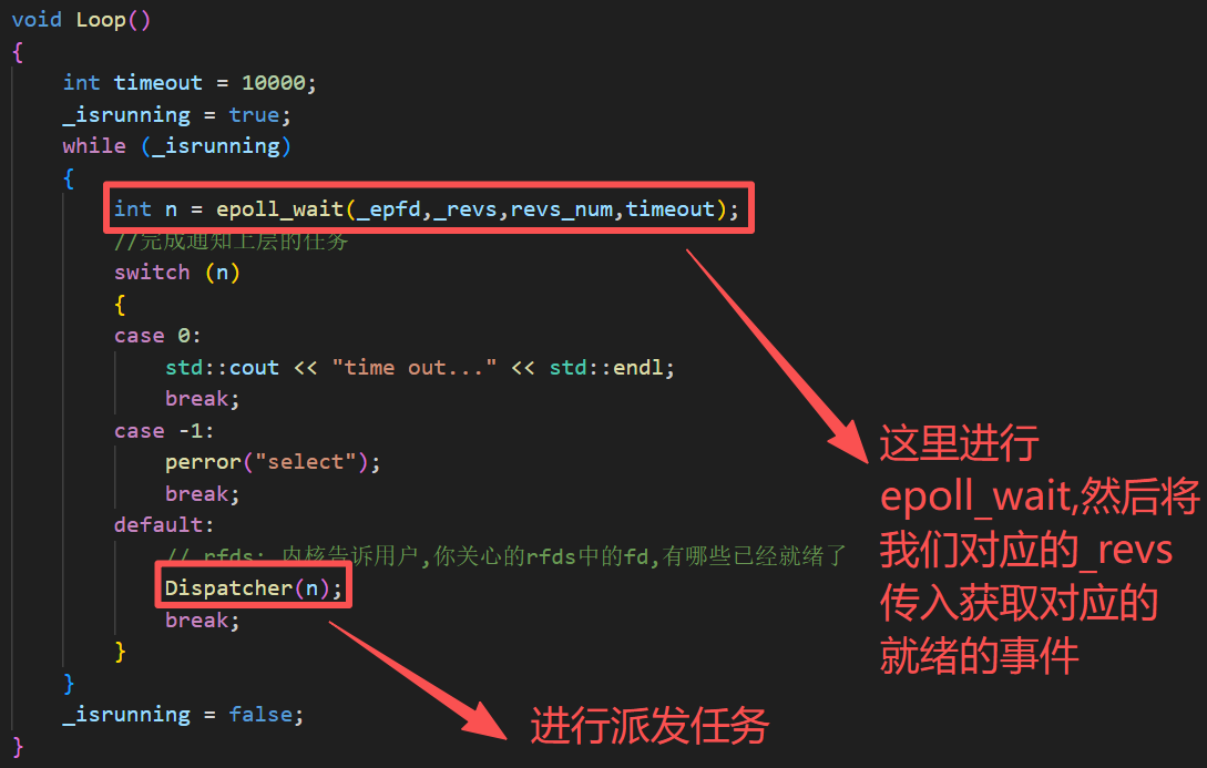 int n = epoll_wait(_epfd,_revs,revs_num,timeout);