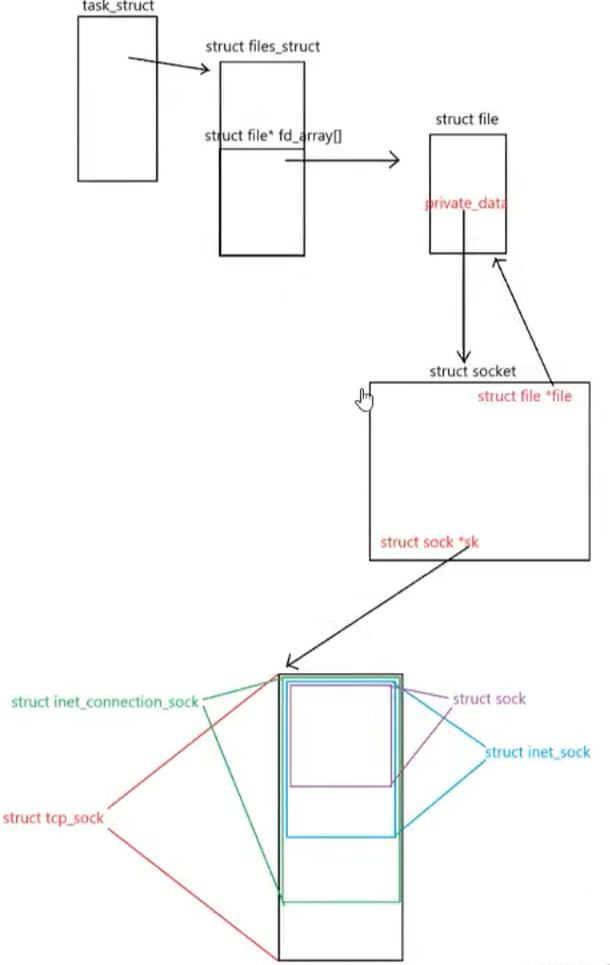 我们要指向对应的tcp_sock结构,因为sock是结构体的第一个成员,所以我们可以进行强转