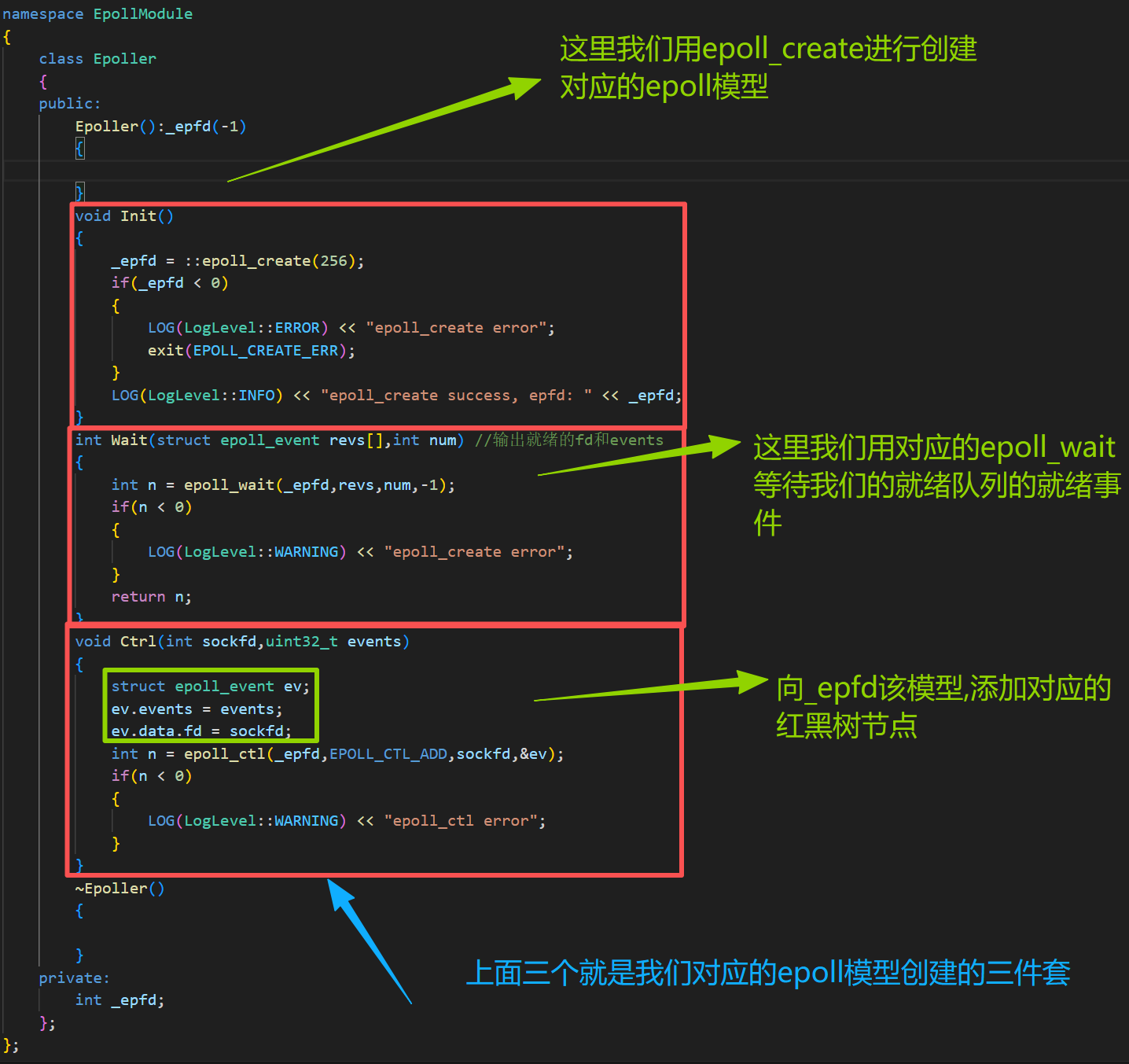 整体的这一套就叫做我们的epoll模型(宏观模型)