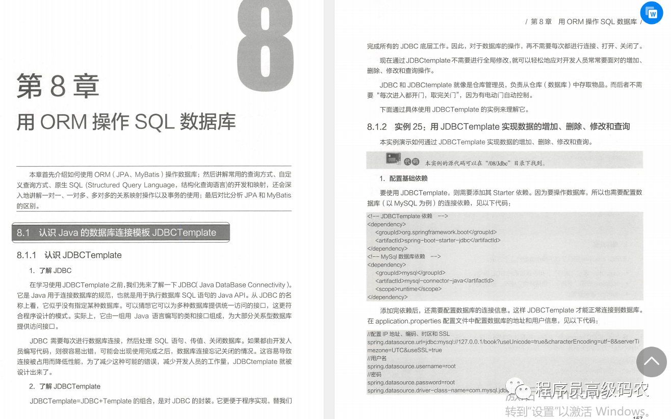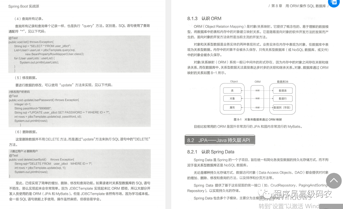 本章首先介绍如何使用ORM ( JPA、MyBatis )操作数据库;然后讲解常用的查询方式、自定义查询方式、原生SQL (Structured Query Language,结构化查询语言)的开发和映射,还会深入地讲解一-对一、- -对多、多对多的关系映射操作以及事务的使用;最后对比分析JPA和MyBatis的区别。