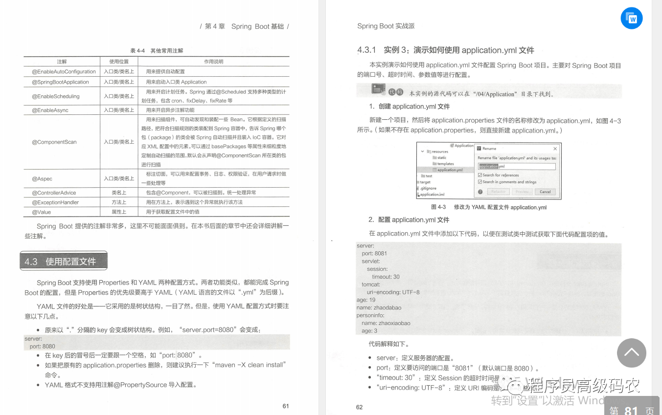 本章首先介绍AOP、loC、Servlet 容器;然后深入讲解自动配置原理、自定义Starter.自定义注解;最后讲解异常的处理,以及如何进行单元测试。