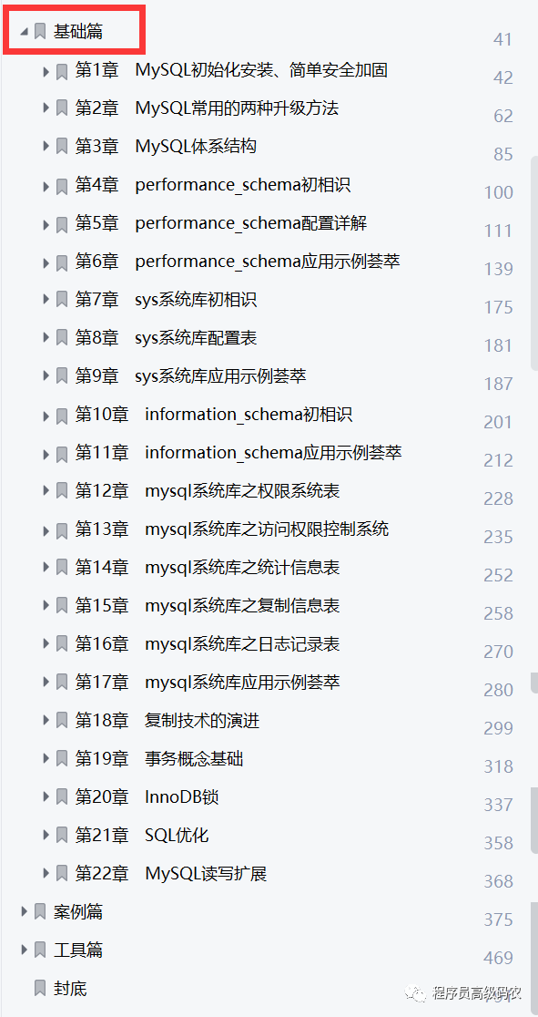 某天晚上我在整理书柜的时候,突然在角落里看到了这本《MySQL金字塔》,翻翻看了一下,这不就是朋友所需要的嘛,这份手册针对不同的读者人群从 基础、案例和工具 三个部分进行讲解,不仅注重实战应用,深入浅出的阐述还让读者更容易理解理论,读起来还不会觉得枯燥。对比了一下其他的书籍,这是我能找到的内容质量最高的关于MySQL的书籍了。想起这份《MySQL金字塔》手册还是大学的时候导师从华为的技术专家那边拿到的,据说是三位大佬耗时半年的时间联合整理才总结出这份宝藏手册。