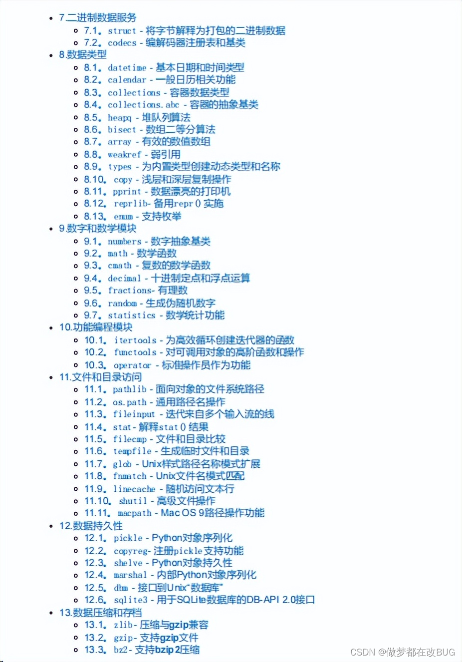 这意味着如果你从头开始阅读本手册,并在感到厌烦时跳到下一章,你仍能对 Python 库的可用模块和所支持的应用领域有个大致了解。