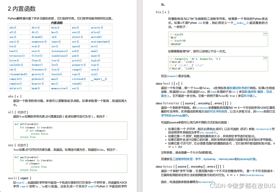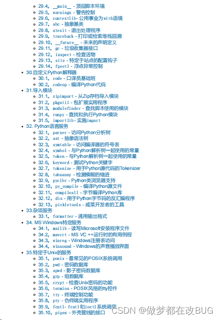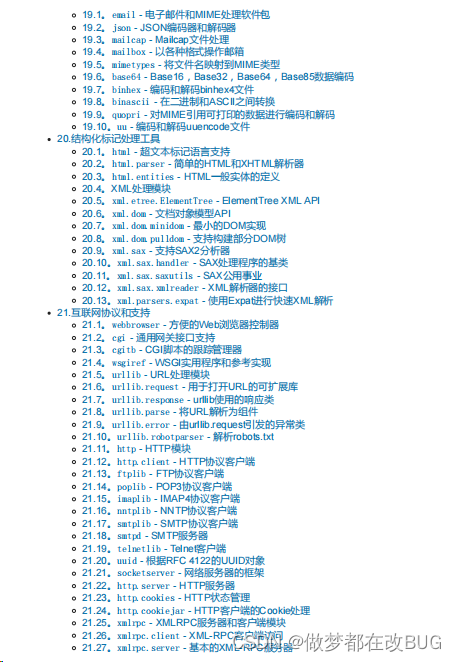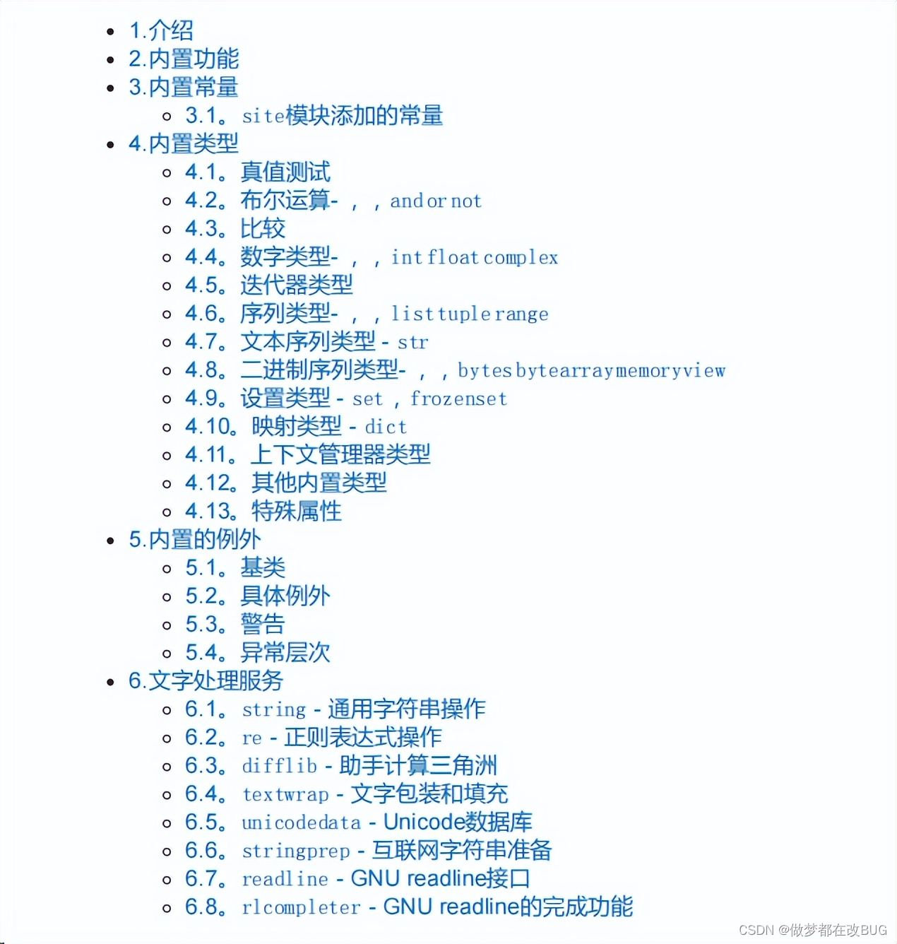 这份手册以” 从内到外” 的顺序组织:首先描述内置函数、数据类型和异常,最后是根据相关性进行分组的各种模块。