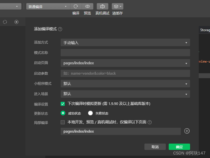 2、本地测试,新建编译条件,关键是测试版本更新的时候每次都要勾选“下次编译时模拟更新”