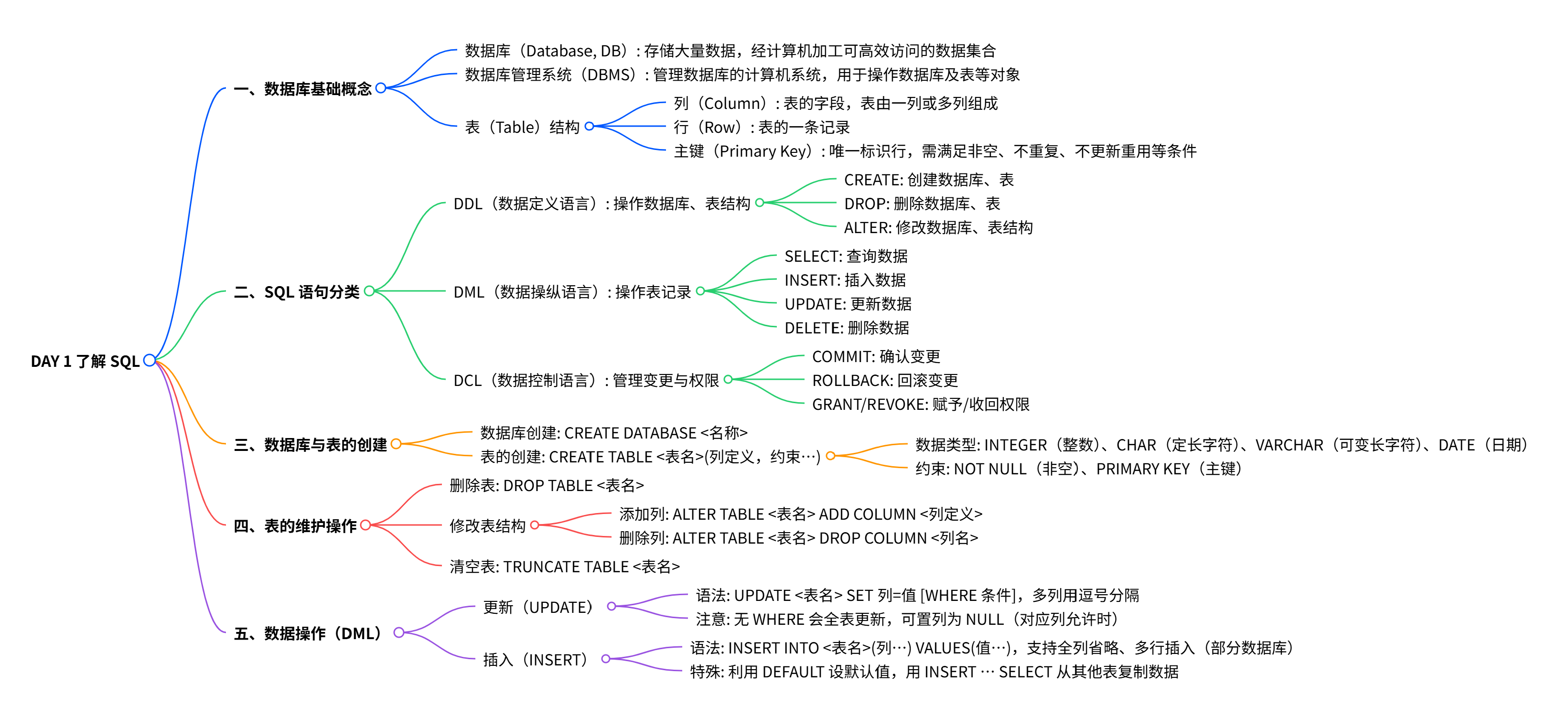 - DML(数据操纵语言):含 SELECT、INSERT、UPDATE、DELETE 操作