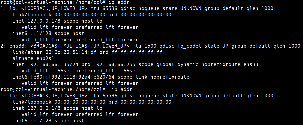 输入:sudo ip addr