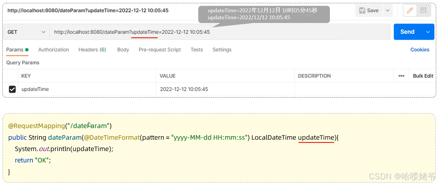 日期参数:使用@DateTimeFormat注解完成日期参数格式转换