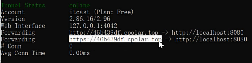 cpolar.exe http 8080(输入自己的后台端口号)