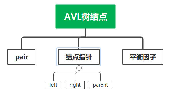 现在回到正题。既然数据是由pair结构来进行存储键值对,那么一个AVL树的结点内的结构该如何定义呢?