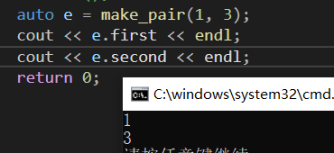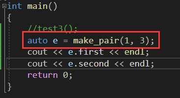 可以看到,上面每次构造一个pair对象都要传入类型,很烦,以后利用此结构进行多次插入的时候就很麻烦。那么能不能让编译器帮我们解决呢?也就是自动识别类型: