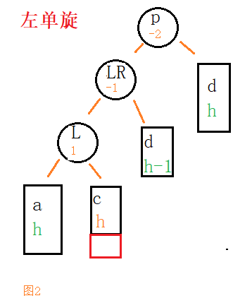 既然右旋转不行,我们先单独看图1中根结点的左子树。由于此时是LR结点的子树高,我们此时想要降低高度目的也就是想将一个结点旋转下去,可以针对于L结点,将其进行左单旋变成图2.此时图中的平衡因子值为之前插入时变化的,并没有修改。