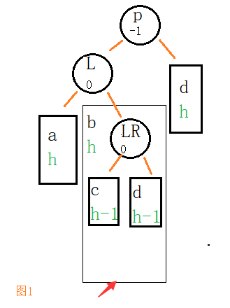 h表示子树长度,并且h>=0。L、LR和P均为具体的结点,abcd只是表示这一部分的子树。