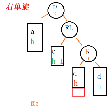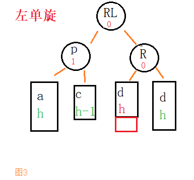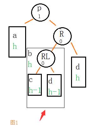 h表示子树长度,并且h>=0。R、RL和P均为具体的结点,abcd只是表示这一部分的子树。