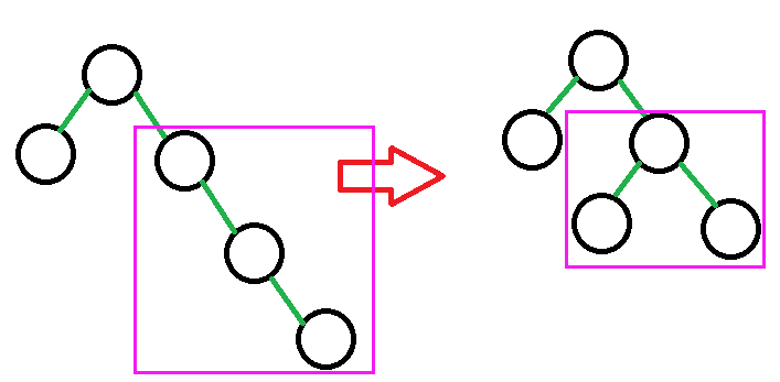 我们其实从这里就可以探讨一下所谓平衡:基础的二叉搜索树之所以会出现那样的问题,根本在于在插入的时候并没有关注左右子树的高度差,其次当出现一边树比另一边树高的时候,应该将低的那一边树的结点给旋转下去。