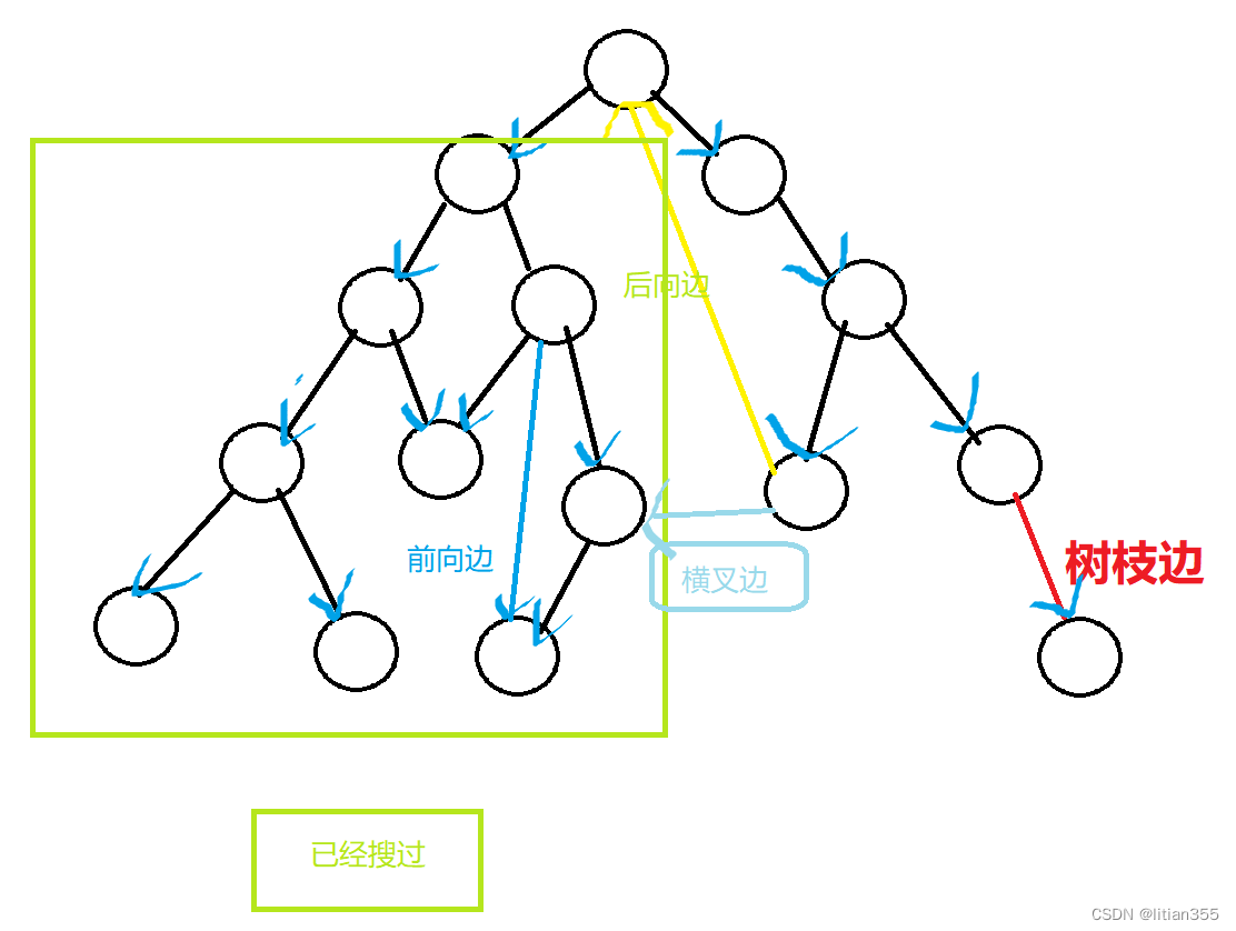 4.横叉边<x,y> x已经被dfs遍历过,但x不是y的一个祖宗节点