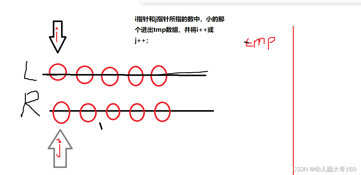 数组被分为两段 L[ ]和R[ ];长度相等;