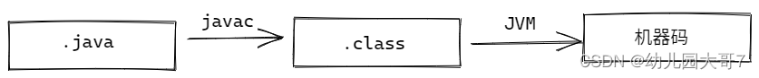 1、编译。使用javac对后缀名为.java的代码文件进行编译,生成字节码文件(二进制文件).class。