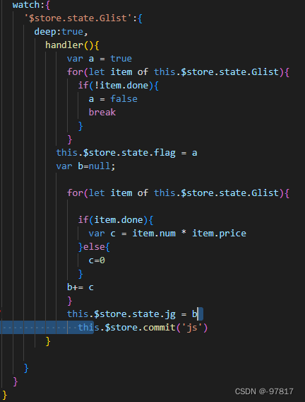 把每条数据的num数量 和 price价格 总和加到一起 这些可以直接写在监听里边 值改变就会重新计算