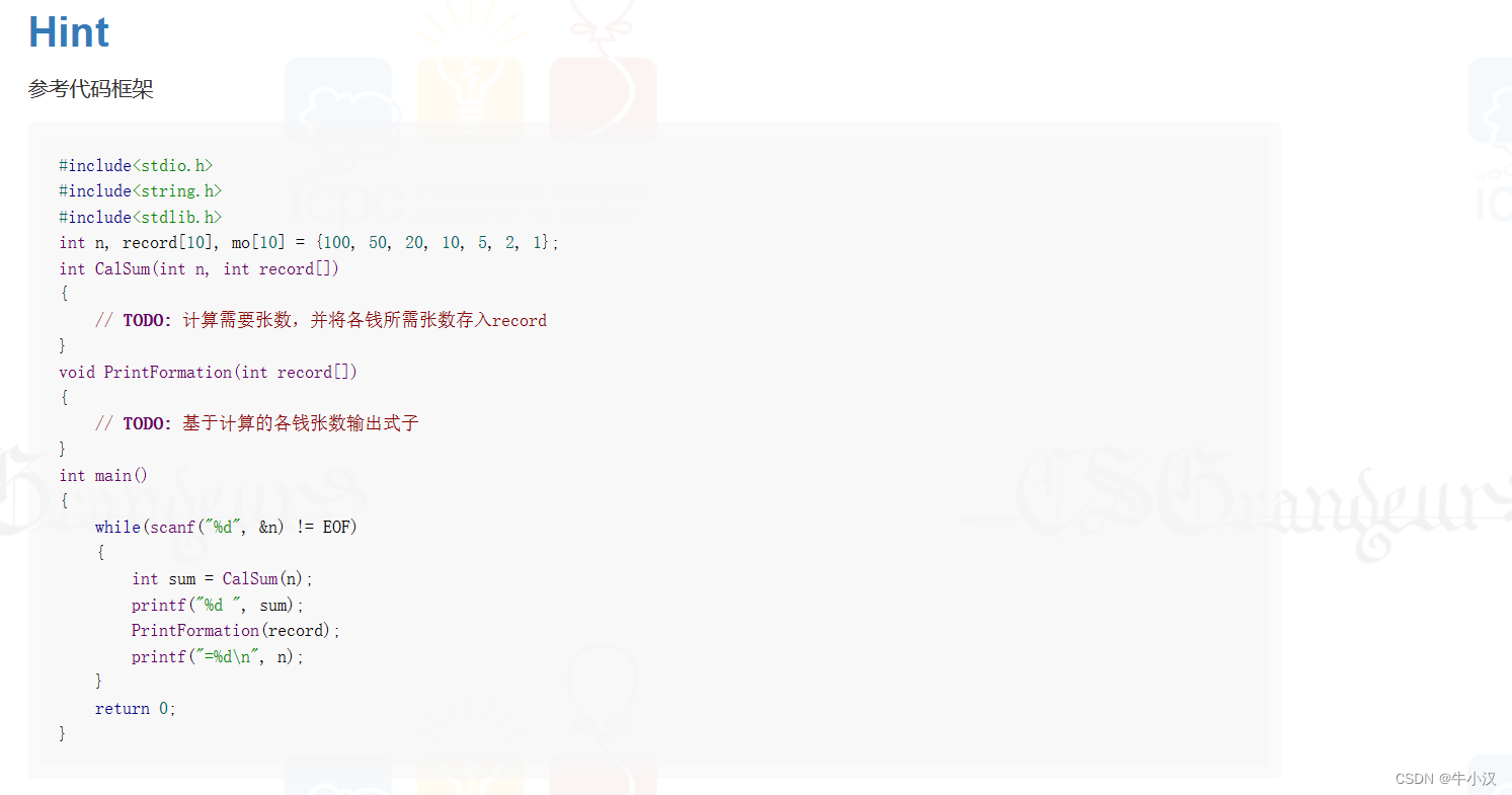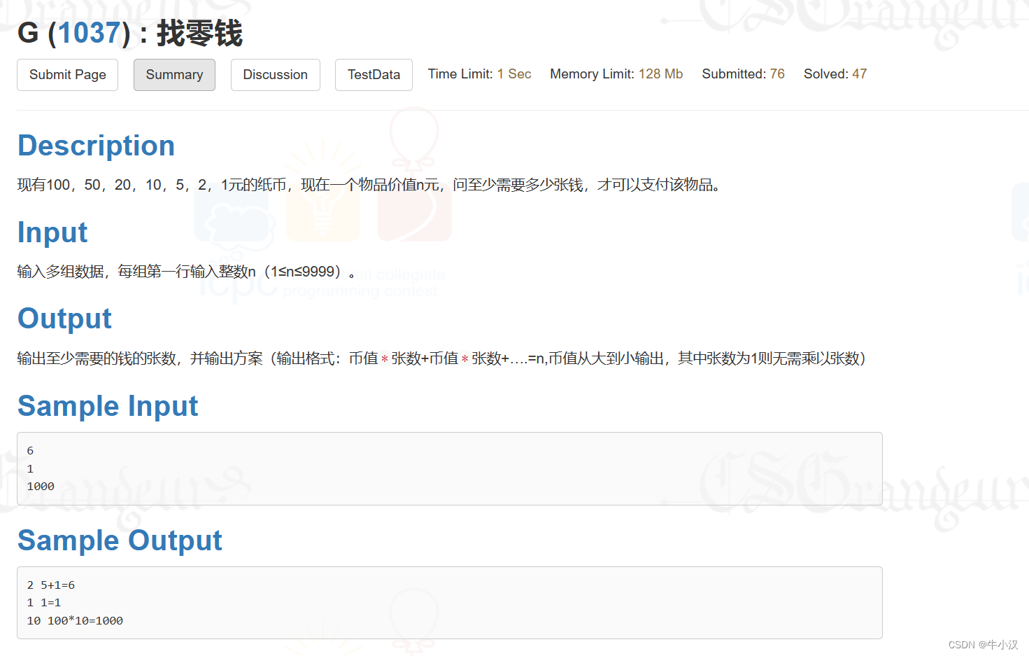 int record[10005], money[7] = { 100, 50, 20, 10, 5, 2, 1 };