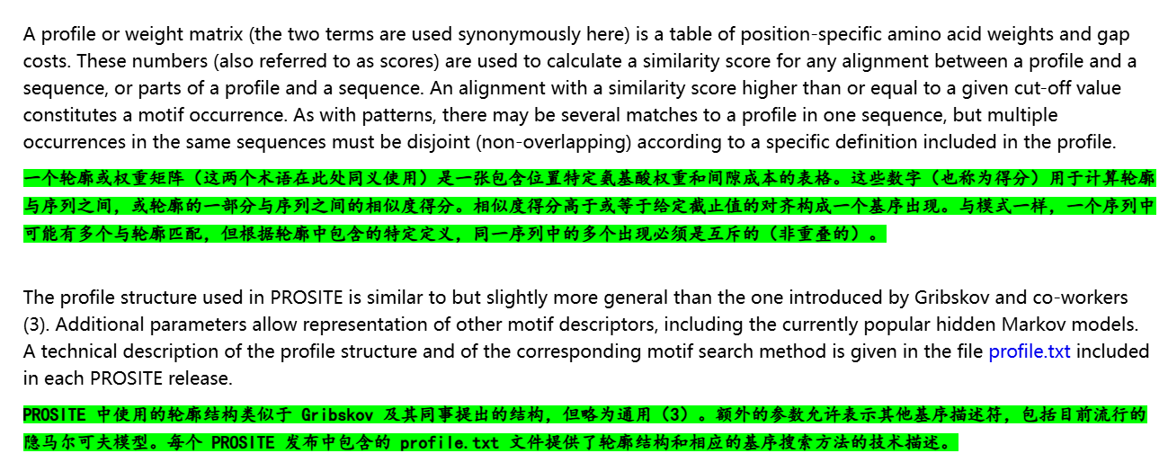 **profile.txt 文件提供了profile结构和相应的基序搜索方法的技术描述(主要是提供了技术方法描述)。