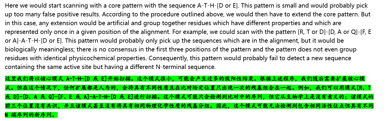 意思就是我们只想要匹配上面的那3条序列,我们最初的A-T-H-[D or E]模式实际上太短了,匹配的假阳性大(意思就是说会匹配到很多其他不是这3条序列的序列,说白了就是这条规则太简单了);