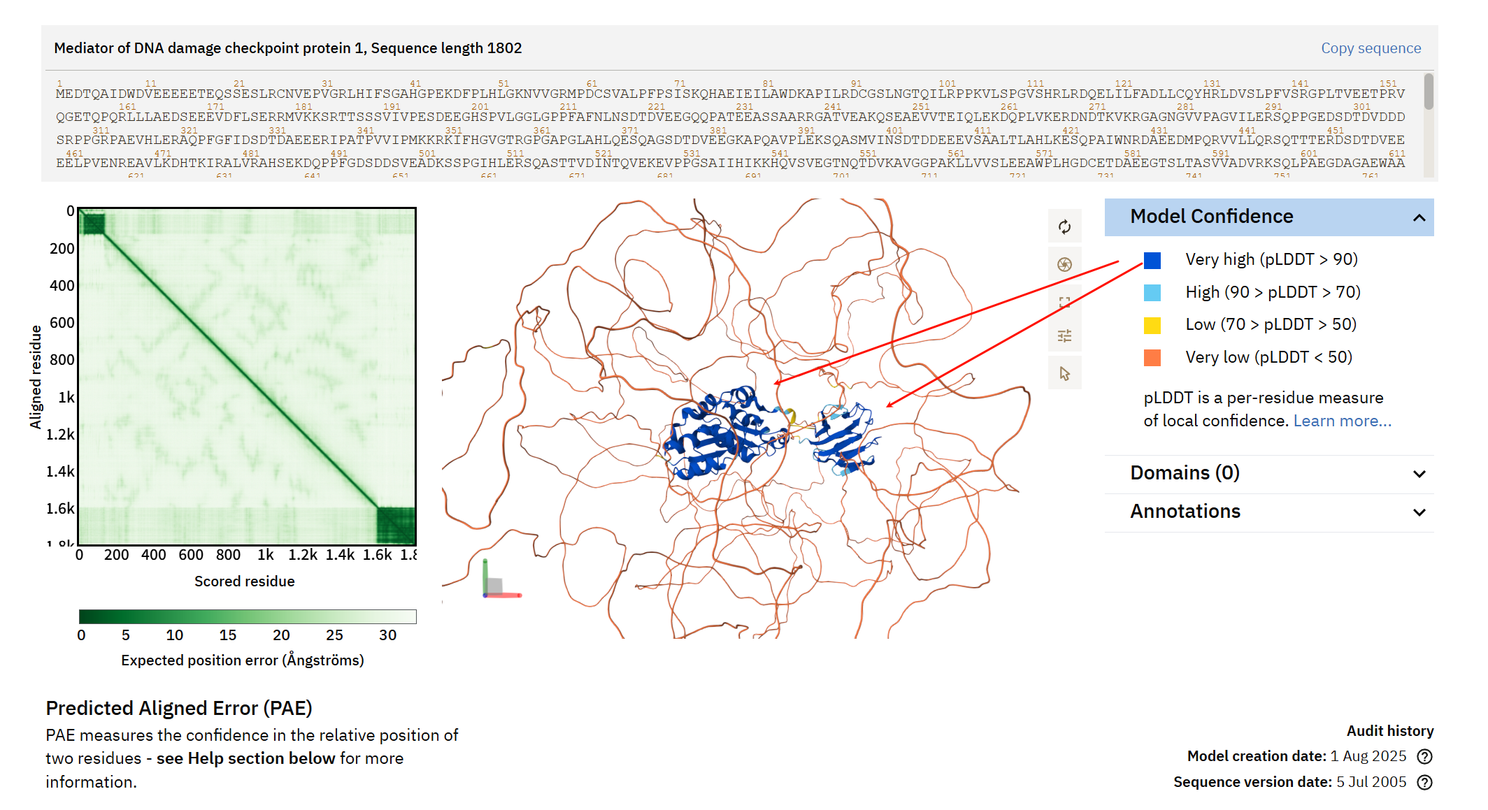 为什么,到底很简单,看看这两个结构域所代表的区域之间的PAE分数,