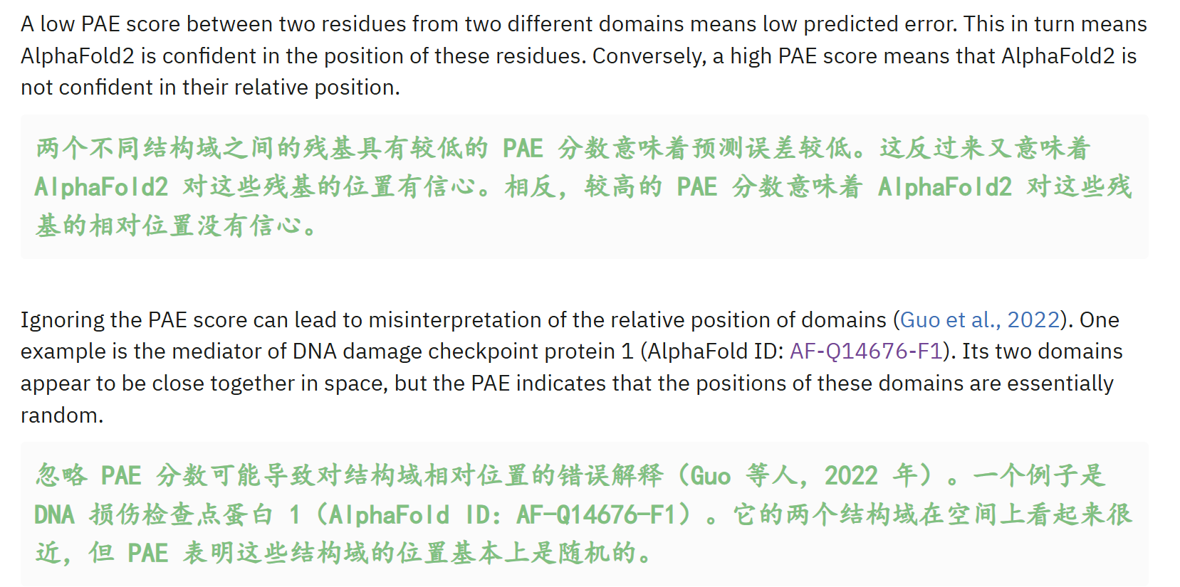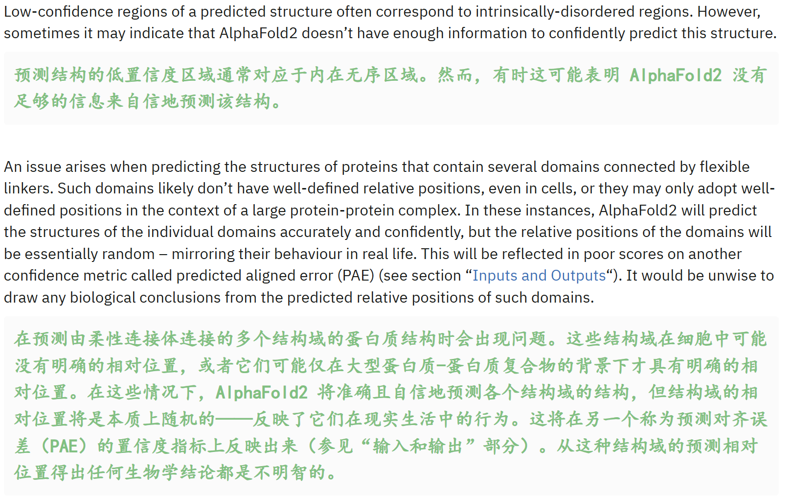 此处再次强调,PAE这个指标非常重要!pLDDT是看局部置信度的,我们只看在局部用这个指标,那么全局我们必须得用上PAE的信息!