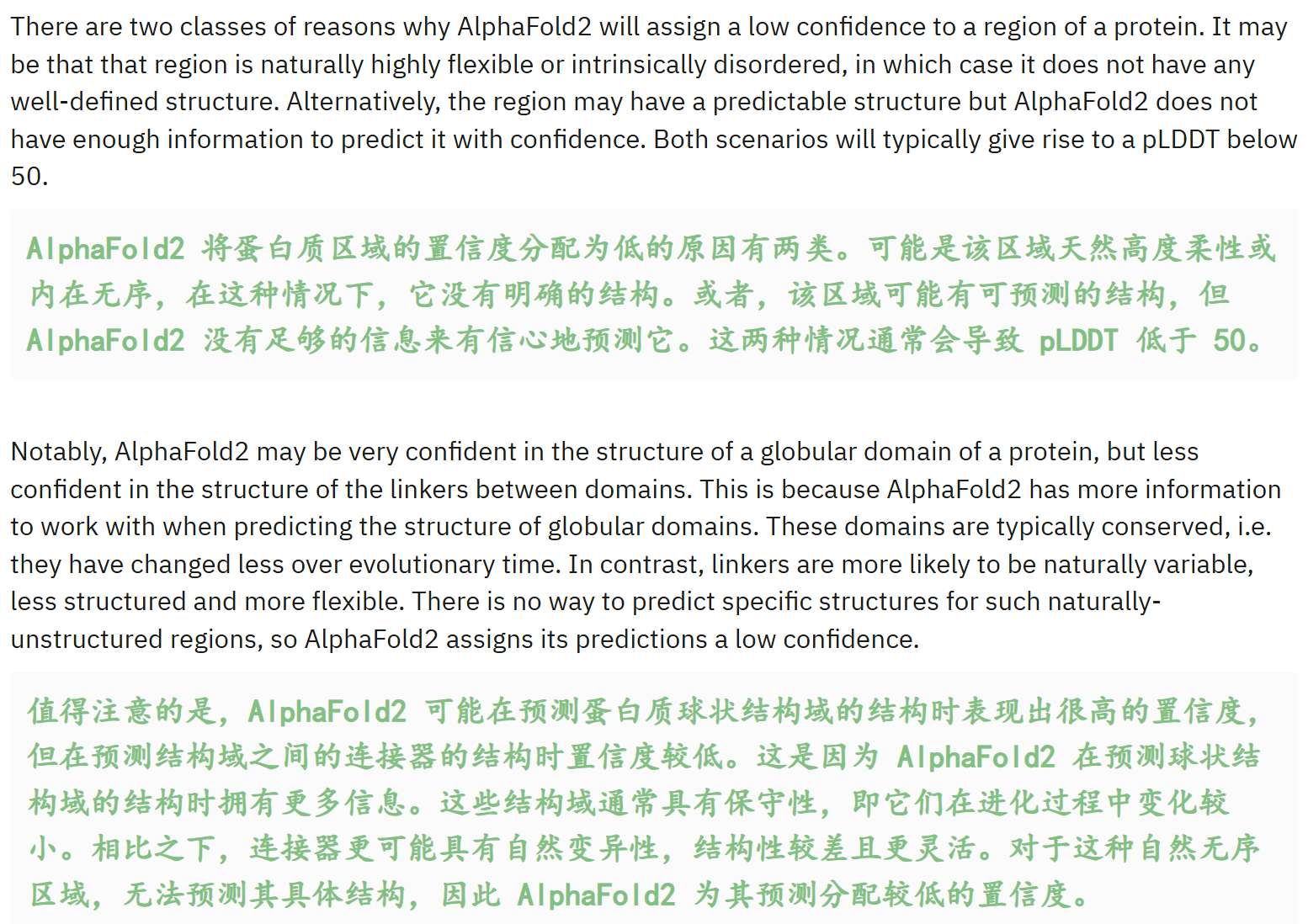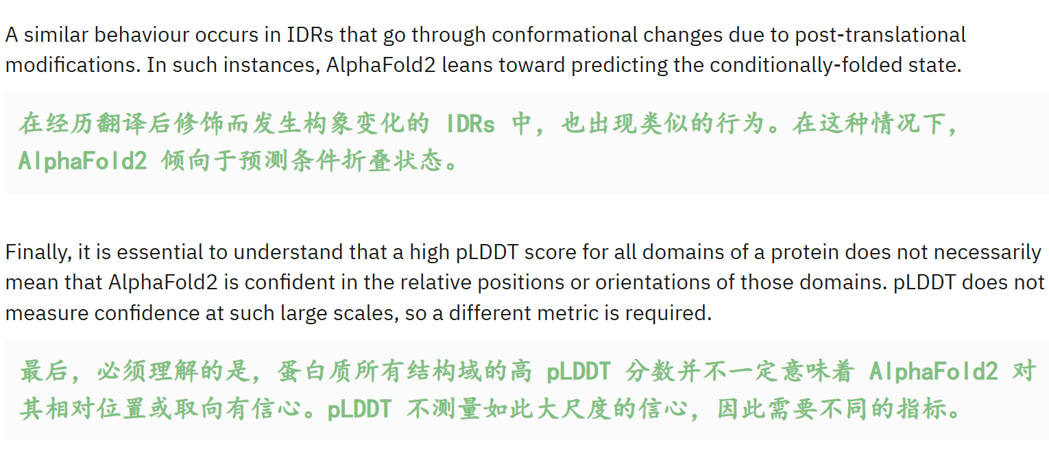 前面说了,pLDDT是局部置信度指标,只能够拿来分析以及查看局部的结构是否预测可靠,涉及到跨局部的指标、特征以及其他结论,都不能够直接推导。