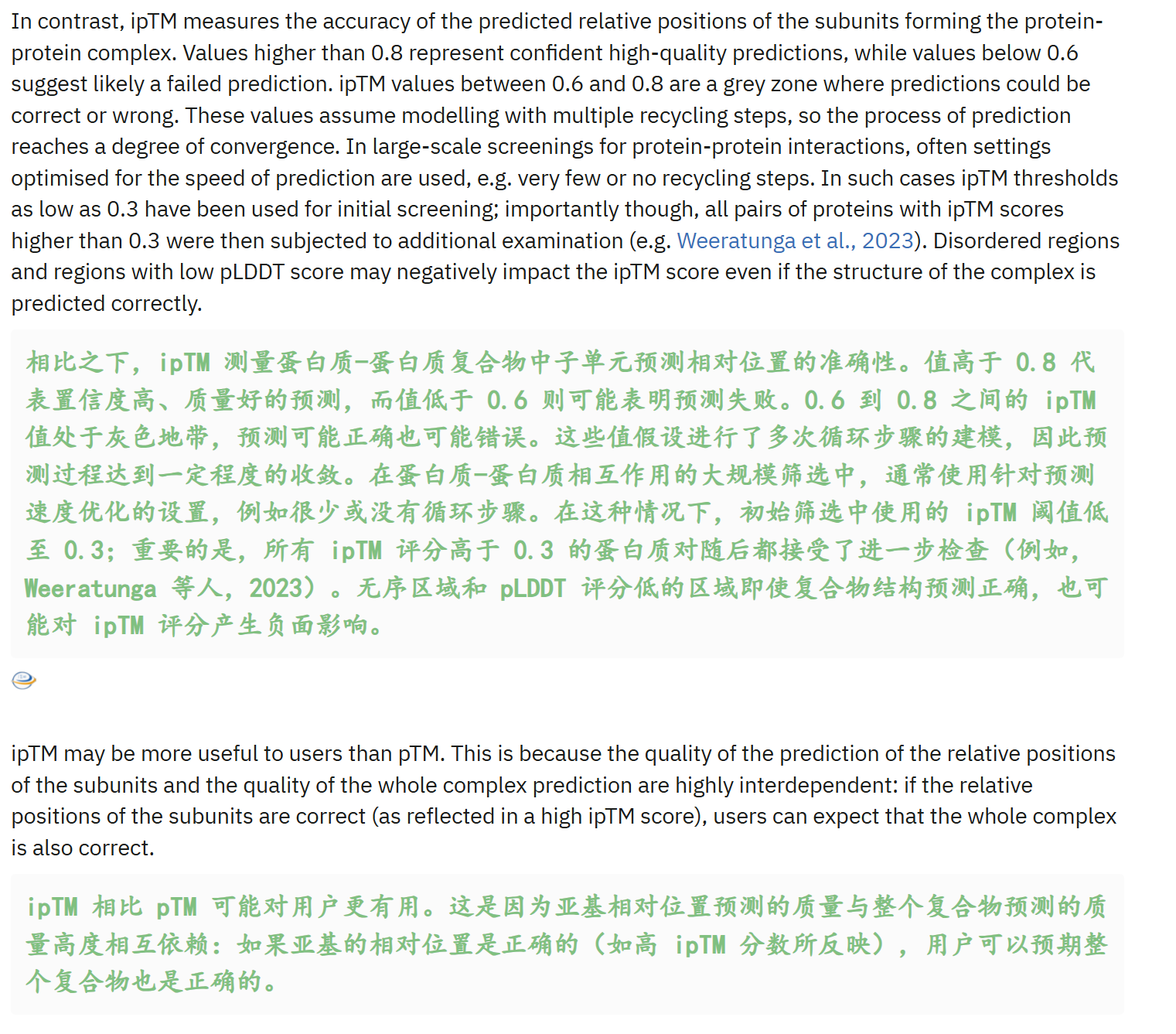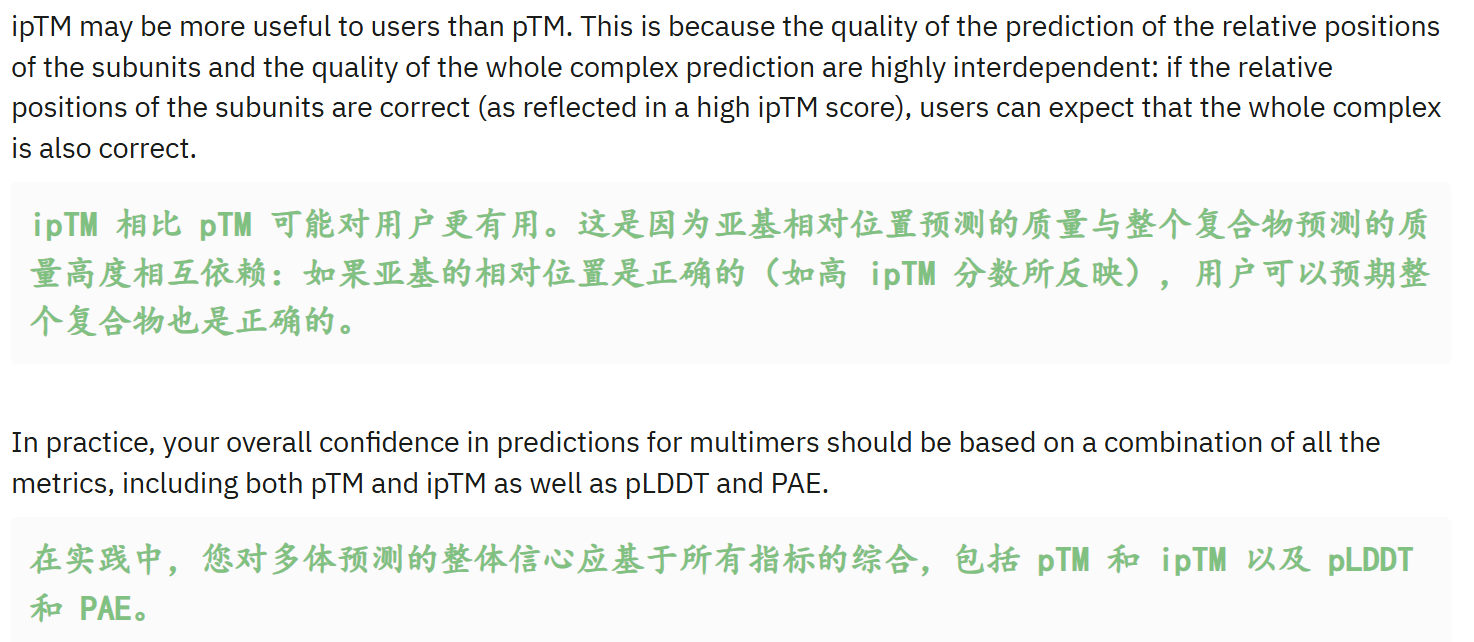 ipTM也是一个结构相对位置的指标,而且官方明确说明ipTM这个指标可能比pTM更有用。