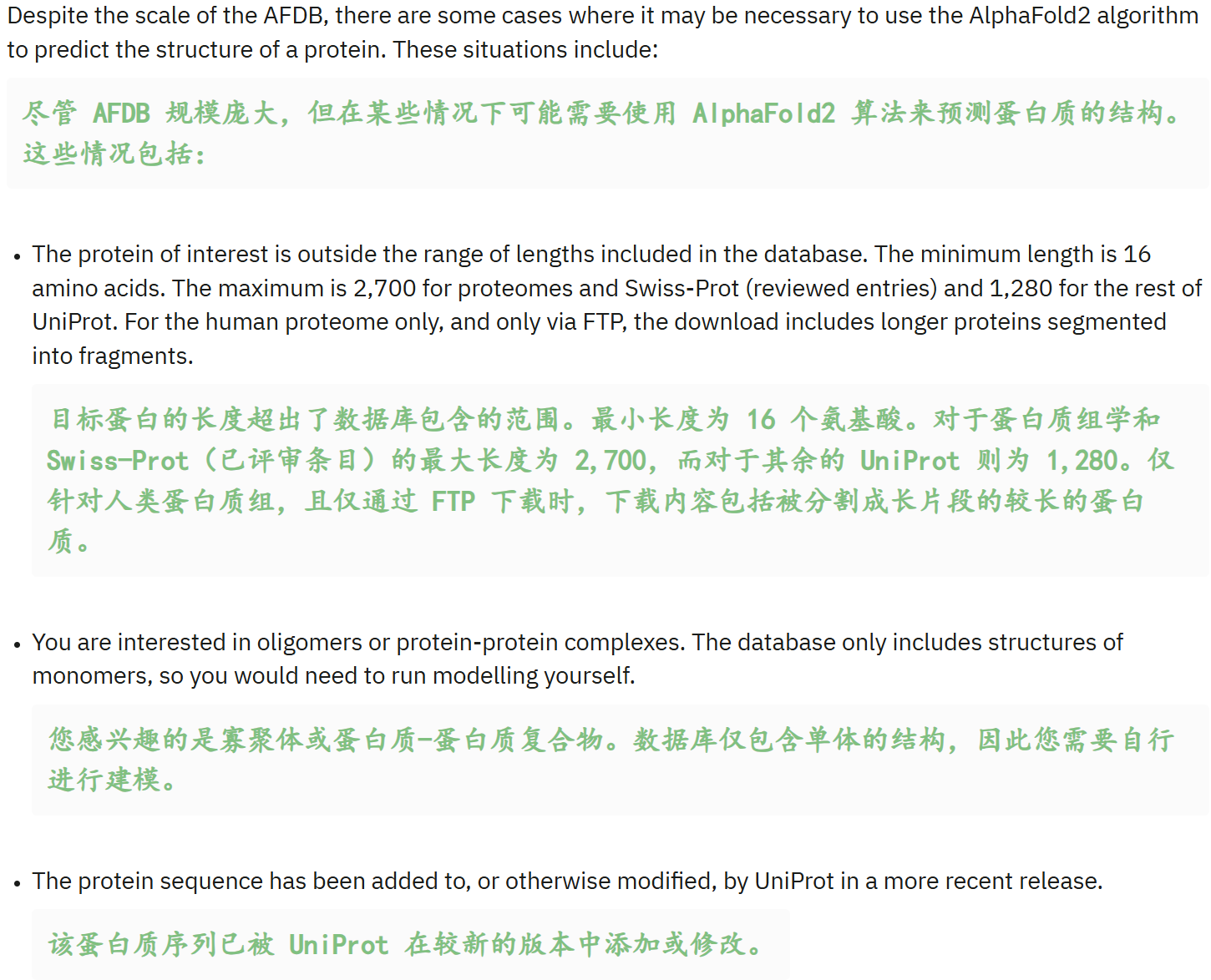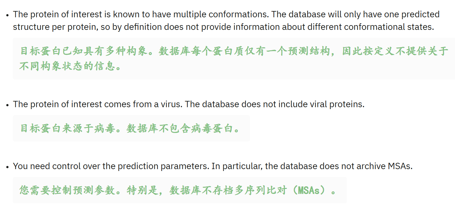 4,AlphaFold 蛋白质结构数据库在什么情况下不是选择?