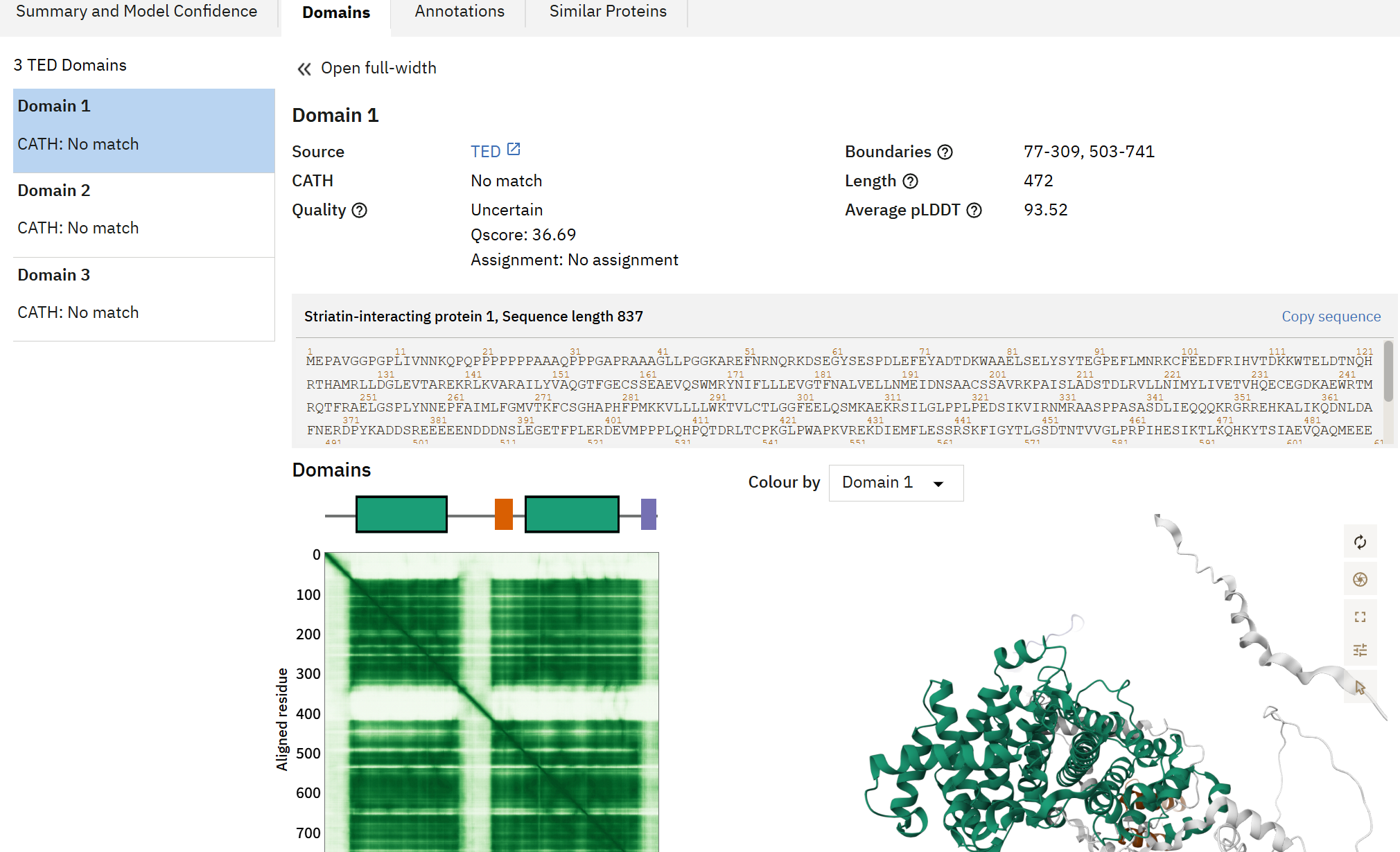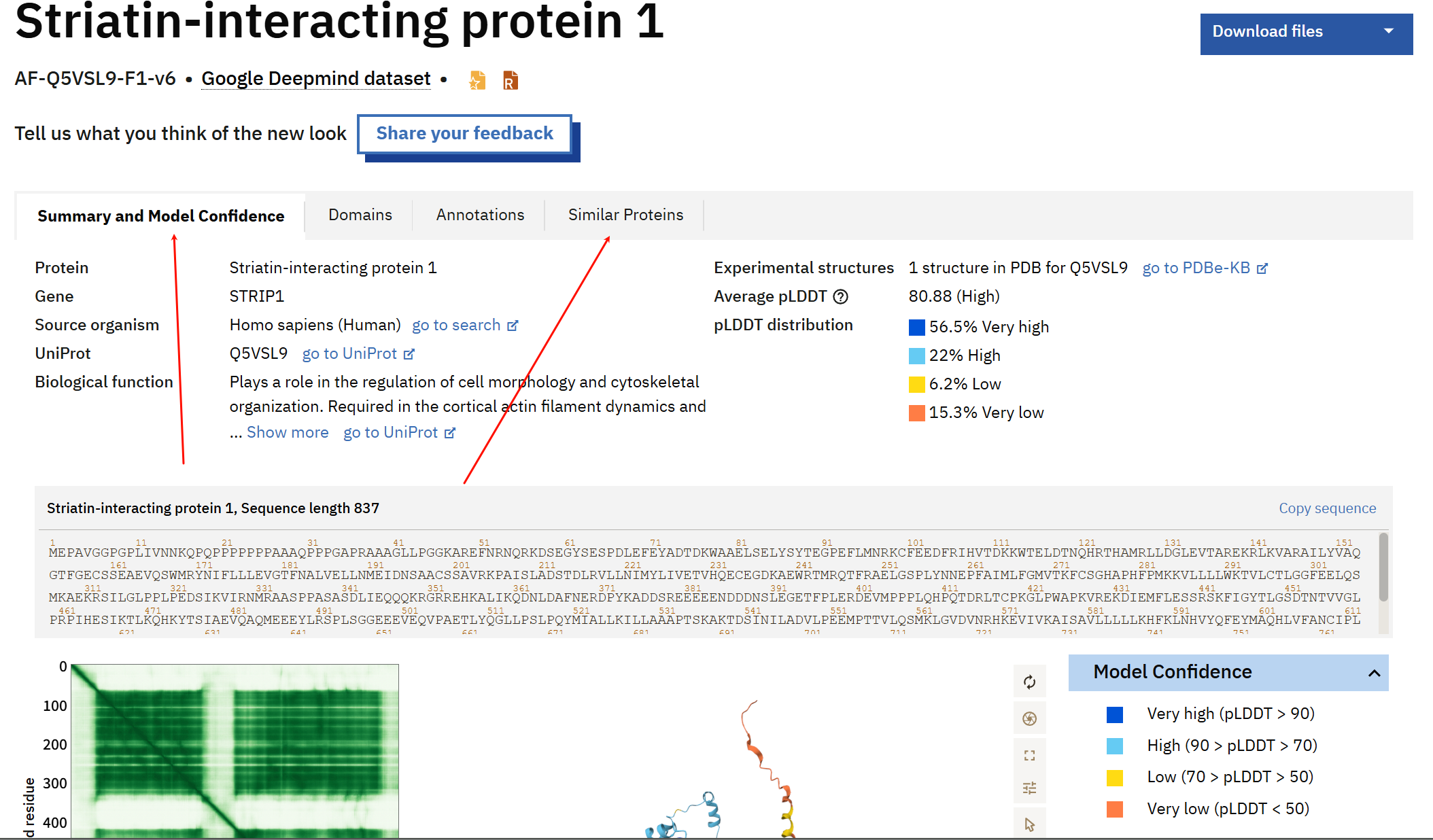 此处我以AFDB中的Striatin-interacting protein 1蛋白质为例,在AFDB中进行聚类搜索演示: