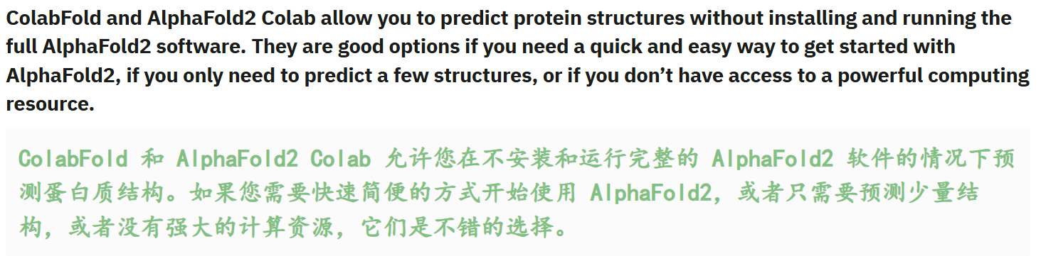 使用 ColabFold 或 AlphaFold2 Colab 在线预测蛋白质结构,这些选项不需要我们安装 AlphaFold2 的源代码。