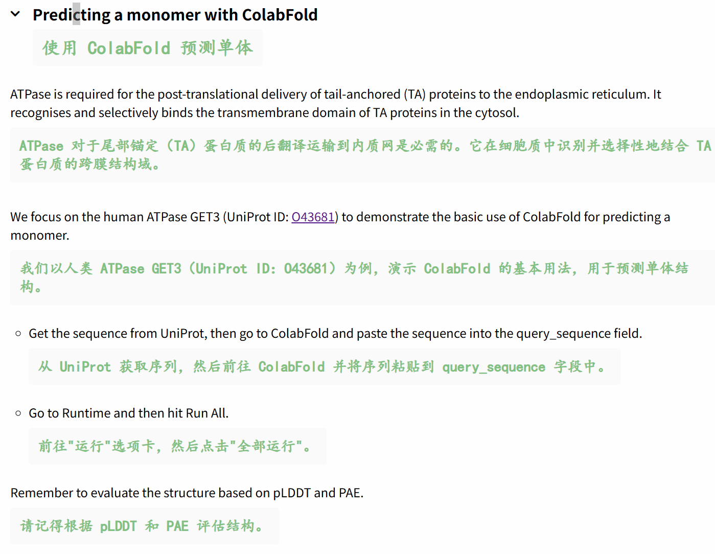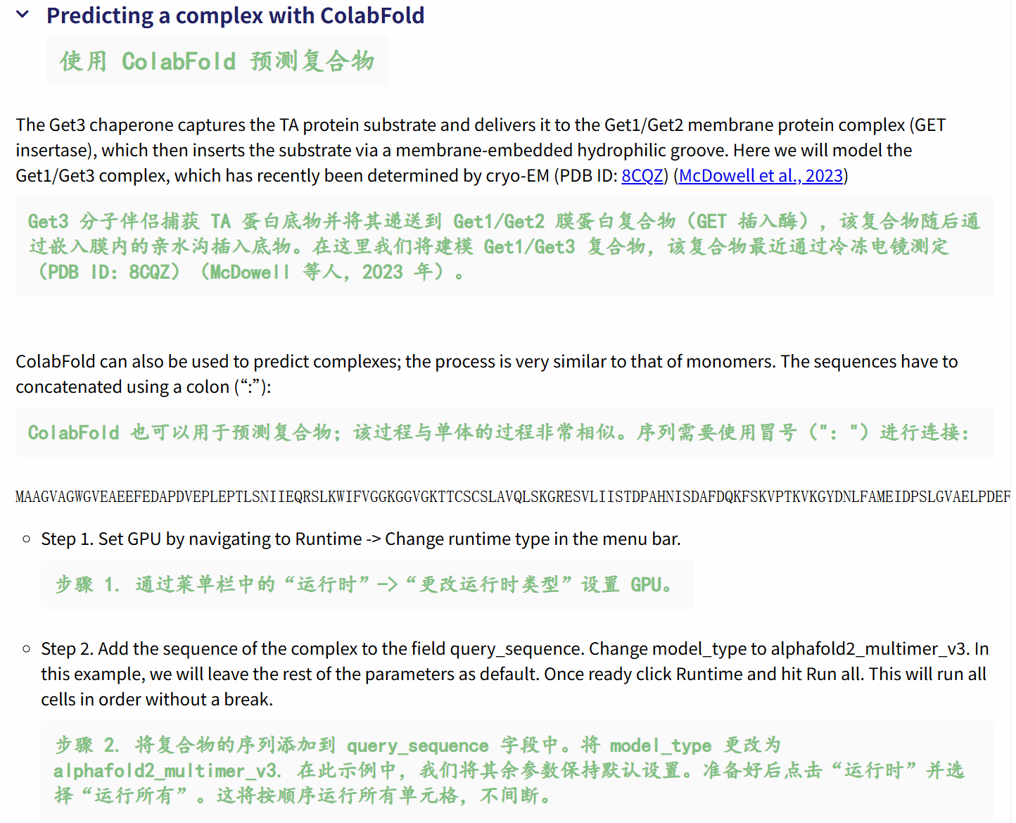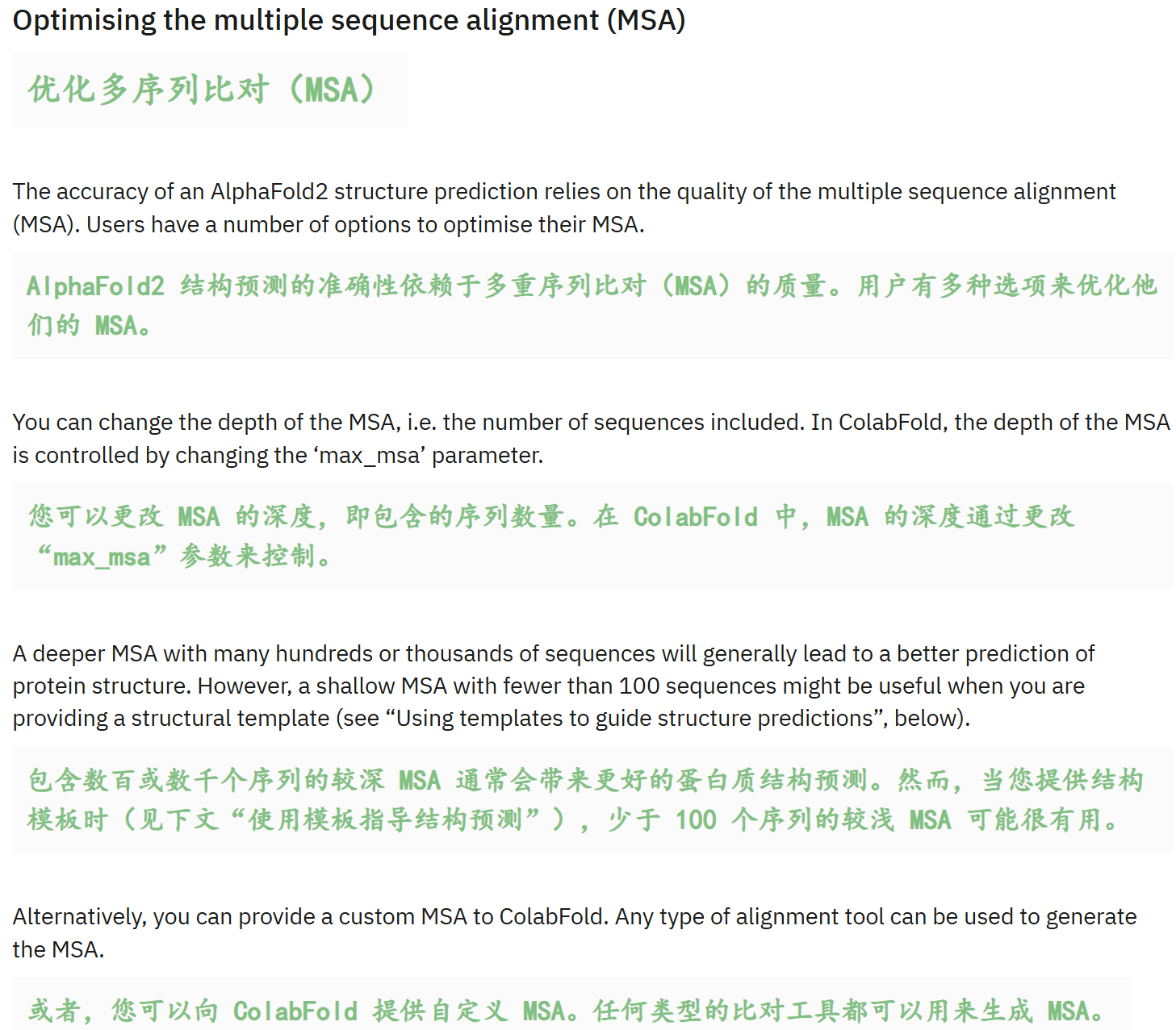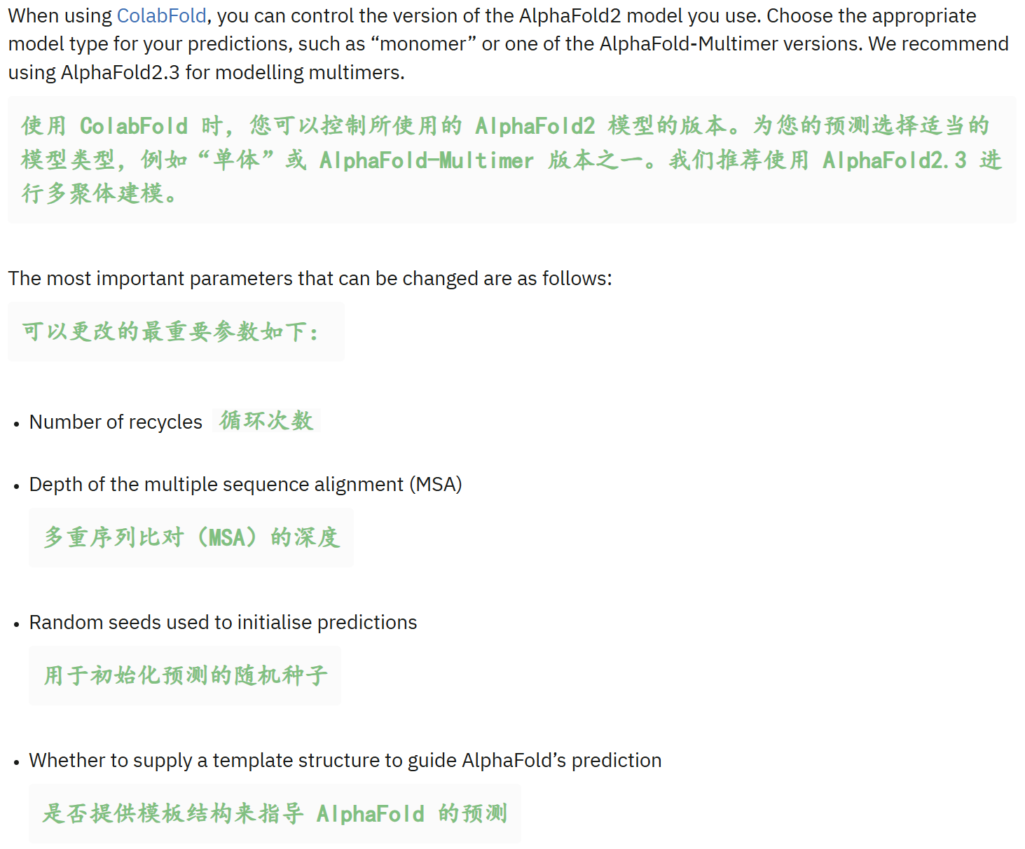 colab的官网中有更多的细节设置:https://colab.research.google.com/github/sokrypton/ColabFold/blob/main/AlphaFold2.ipynb#scrollTo=UGUBLzB3C6WN