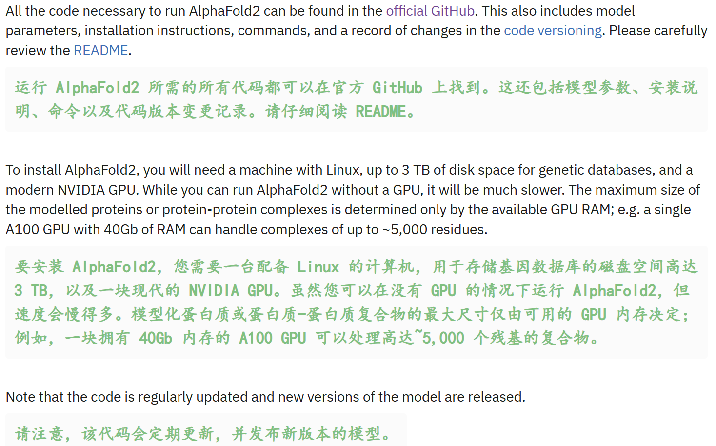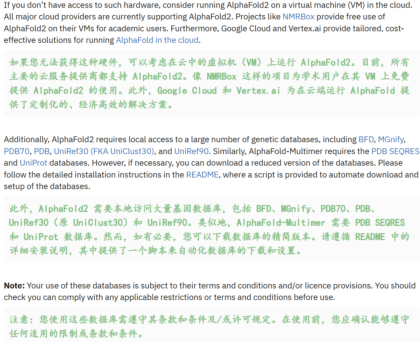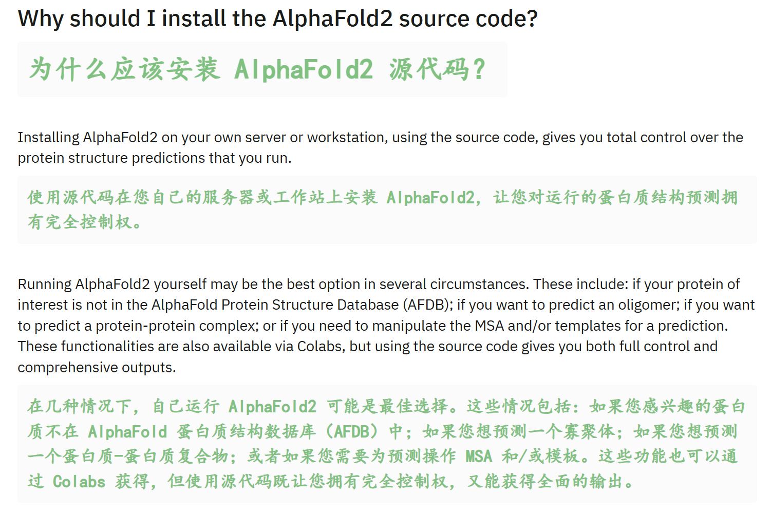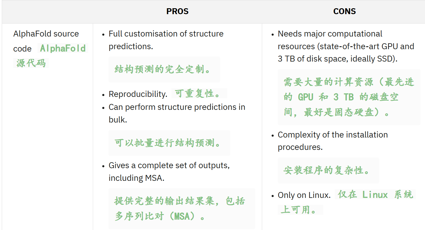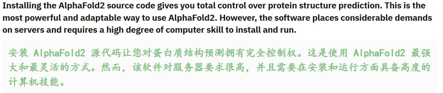 主要问题在于部署的问题,如果计算能力强的话就本地部署,简单询问自己是否能够实现alphafold模型源码仓库的各种基本计算注意要求,